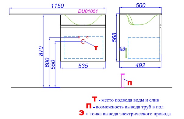 Тумба с раковиной Aqwella Duet 115 L
