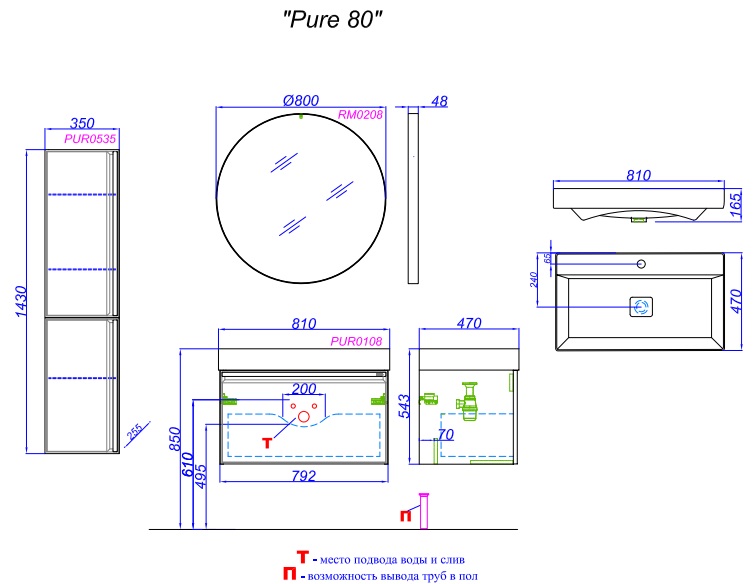 Тумба с раковиной Aqwella Pure 80 шалфей зеленый |