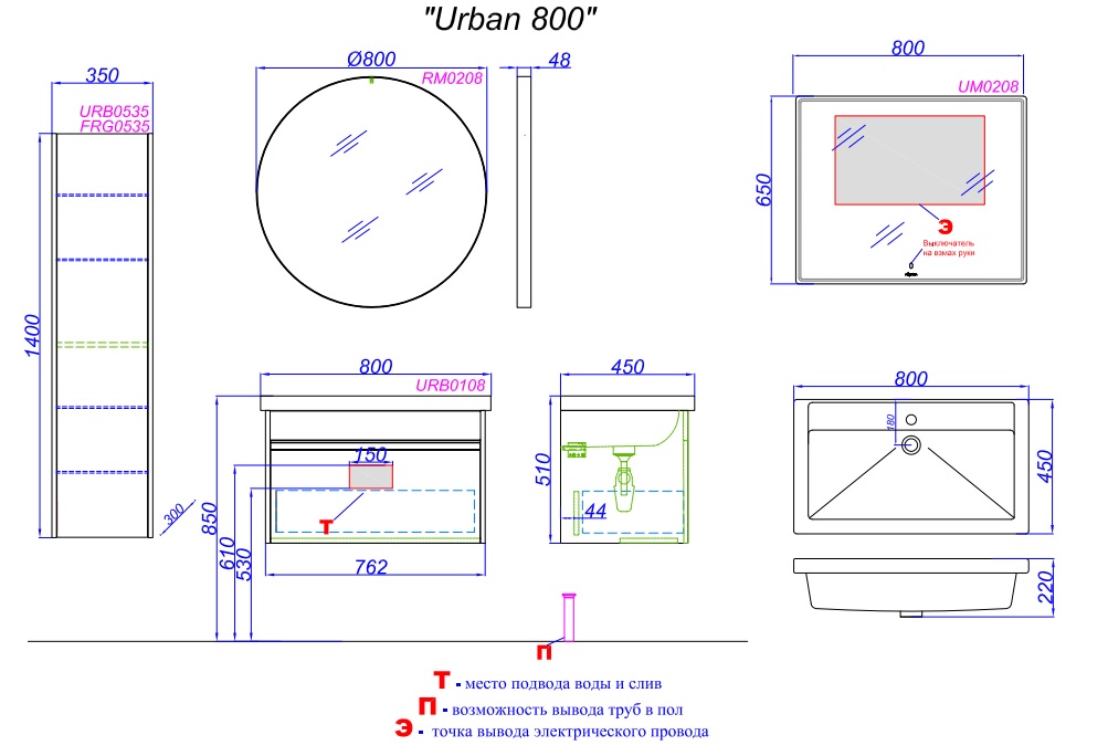 Тумба с раковиной Aqwella Urban 80 дуб давос |