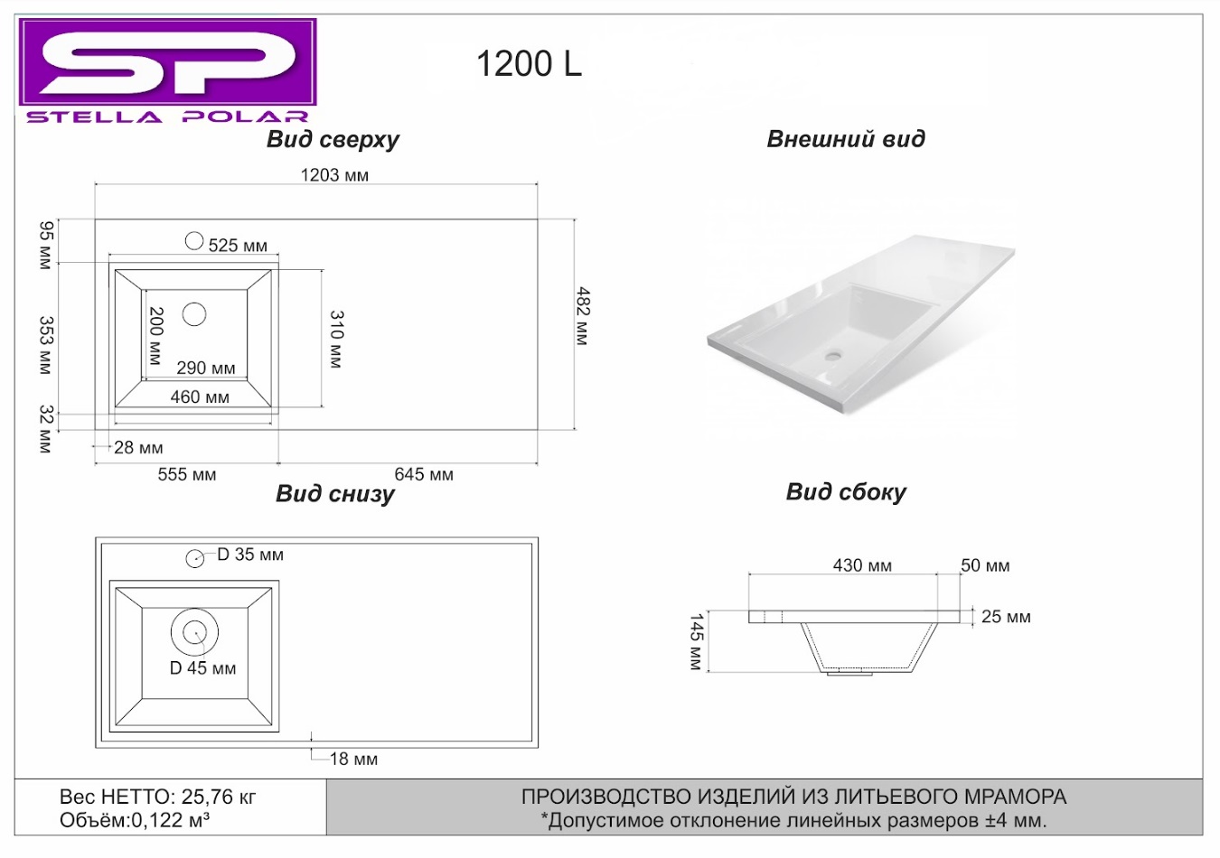 Тумба с раковиной Corozo Алиот 120 L подвесная, с кронштейном |