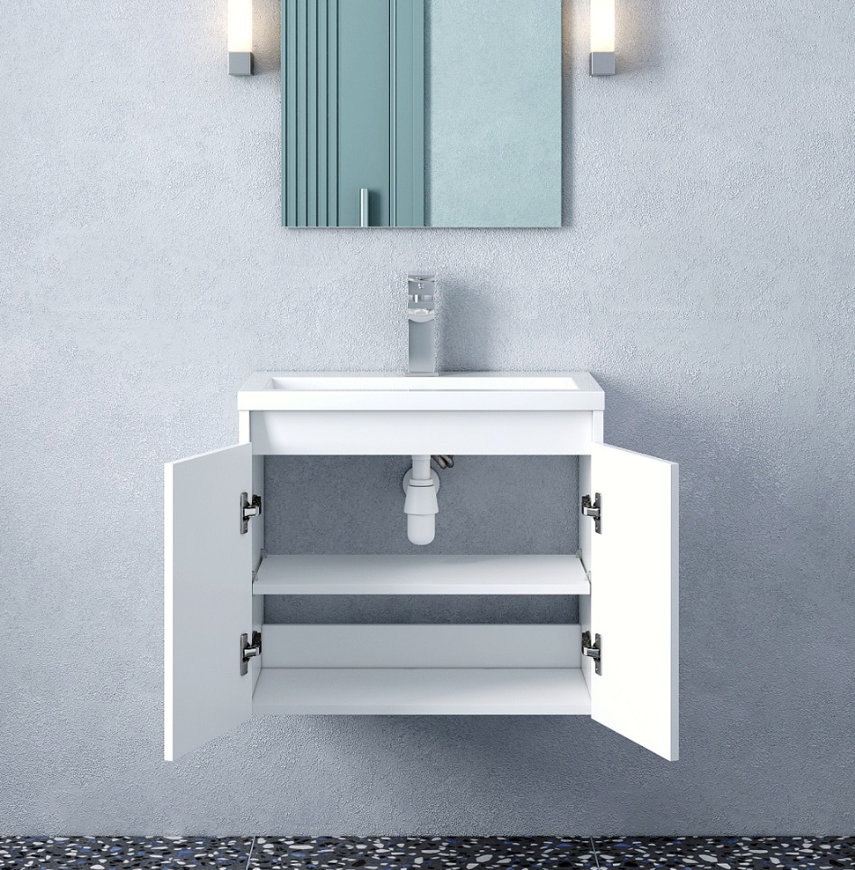 Тумба с раковиной Corozo Блисс 60 подвесная, 2 дверцы белая