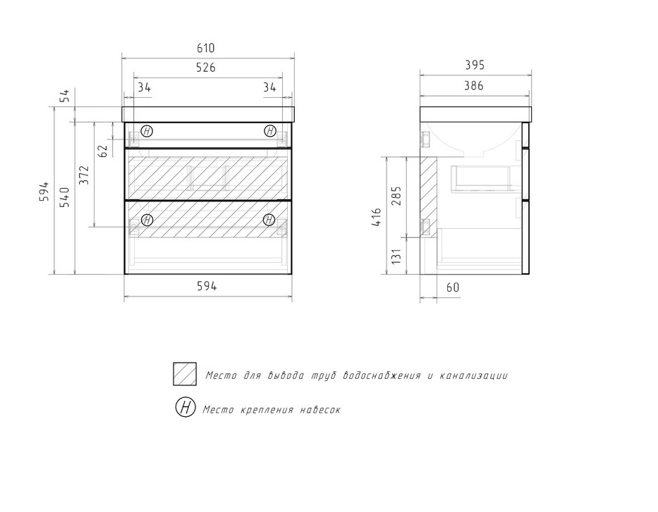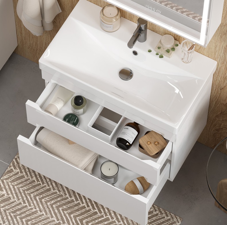 Тумба с раковиной Equil Corner 60 подвесная, 2 ящика, белый |
