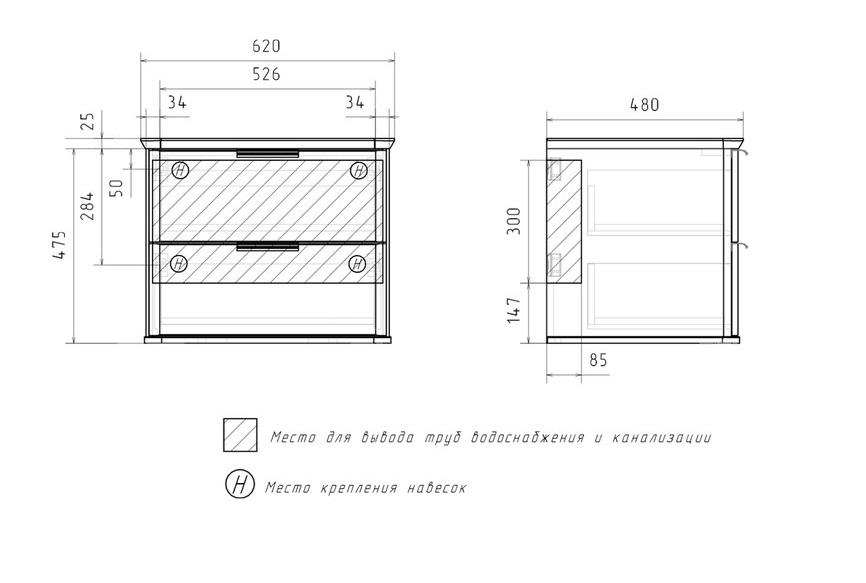 Тумба с раковиной Equil Desert 60 подвесная, 2 ящика, амарок