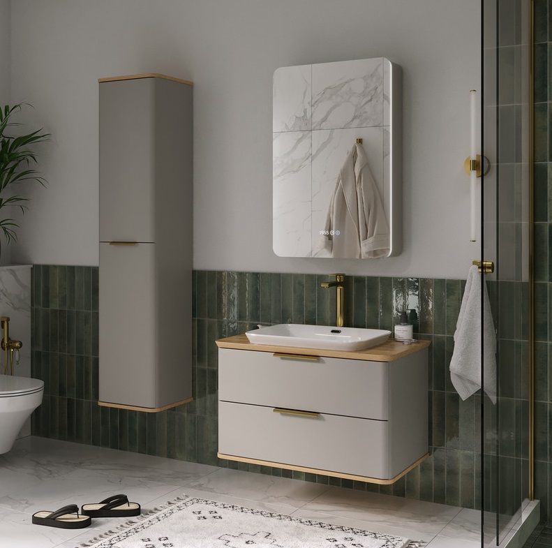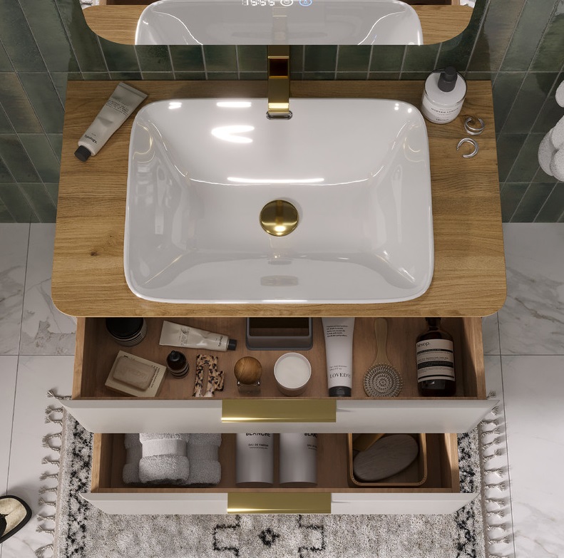 Тумба с раковиной Equil Desert 80 подвесная, 2 ящика, амарок |