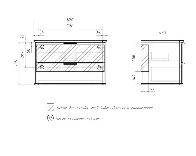 Тумба с раковиной Equil Desert 80 подвесная, 2 ящика, амарок