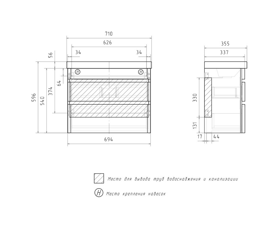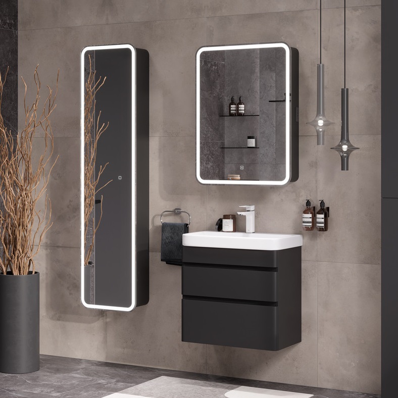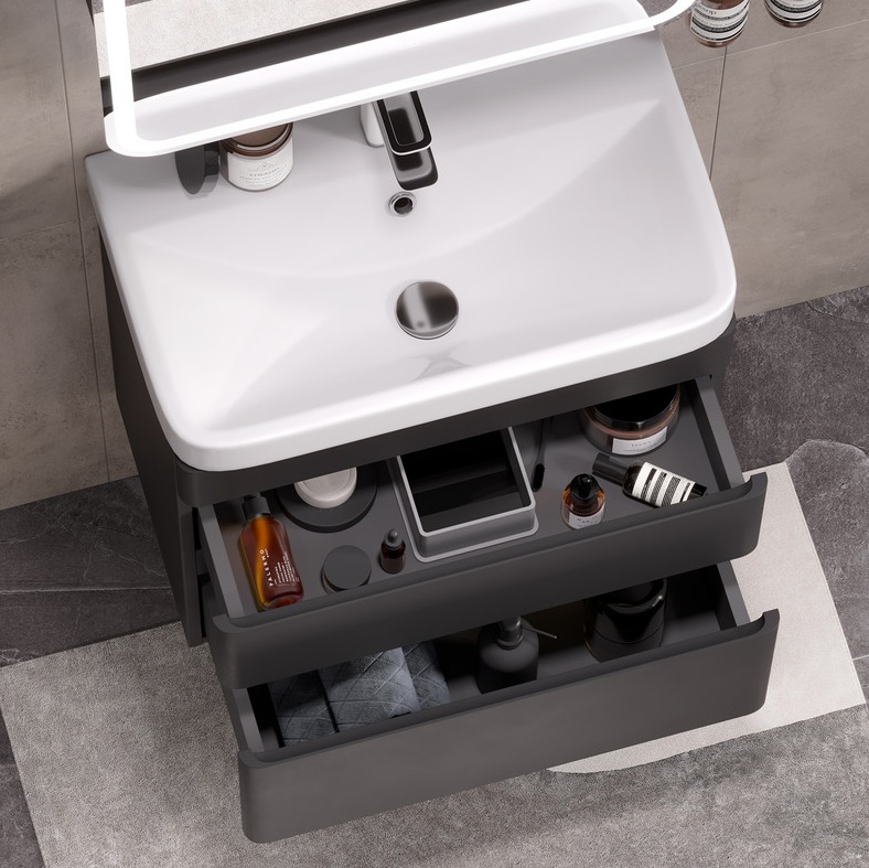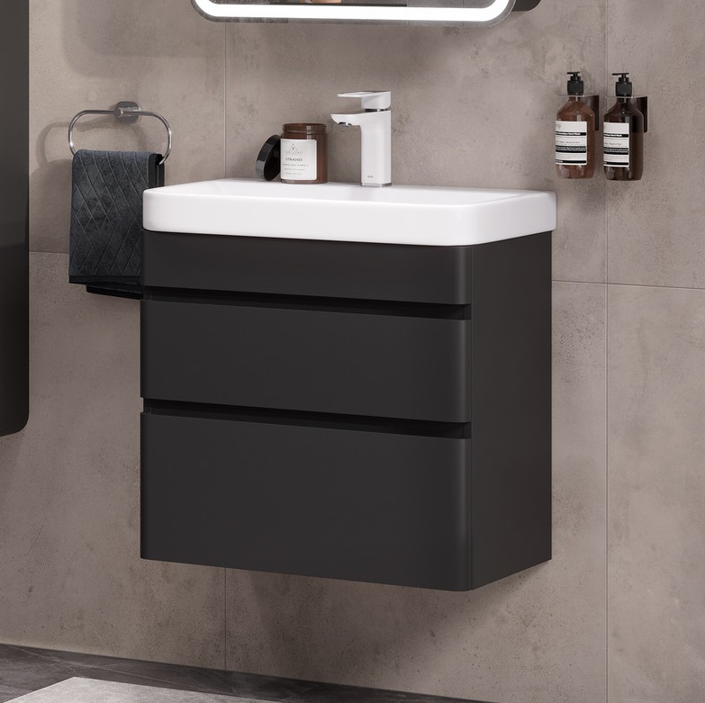Тумба с раковиной Equil Eltoro 70 подвесная, 2 ящика, черный софт