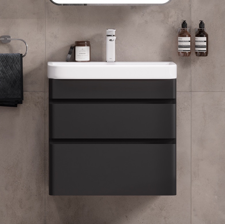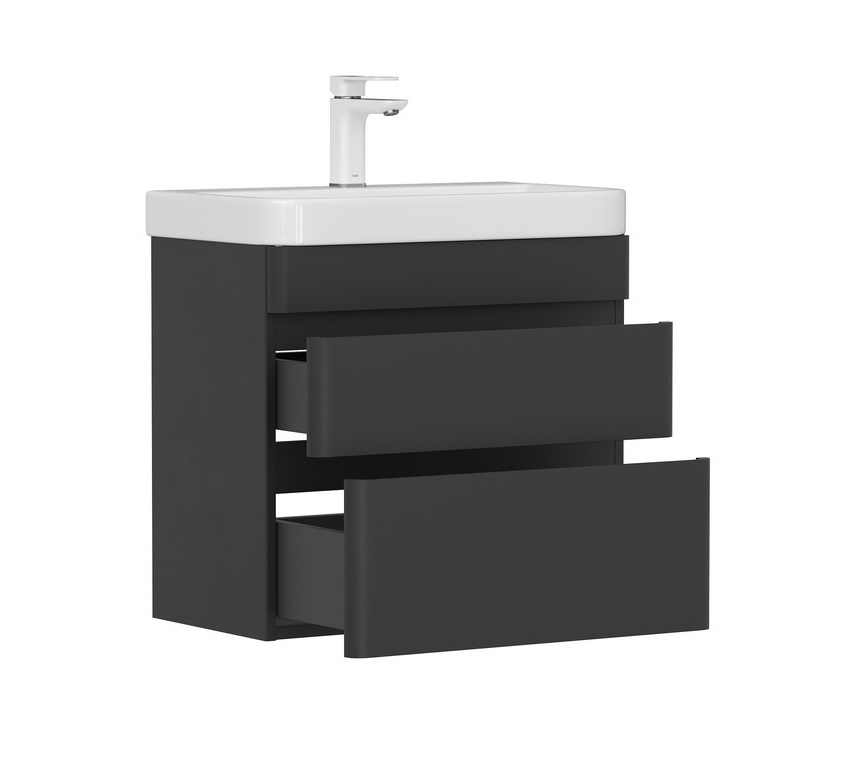 Тумба с раковиной Equil Eltoro 70 подвесная, 2 ящика, черный софт |