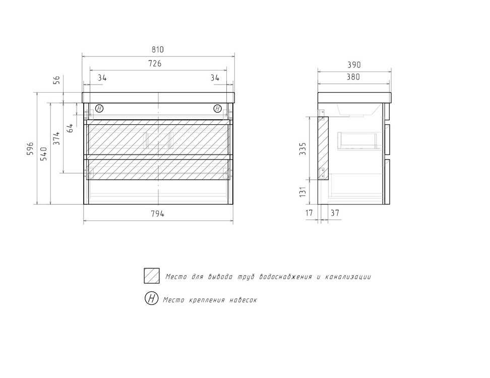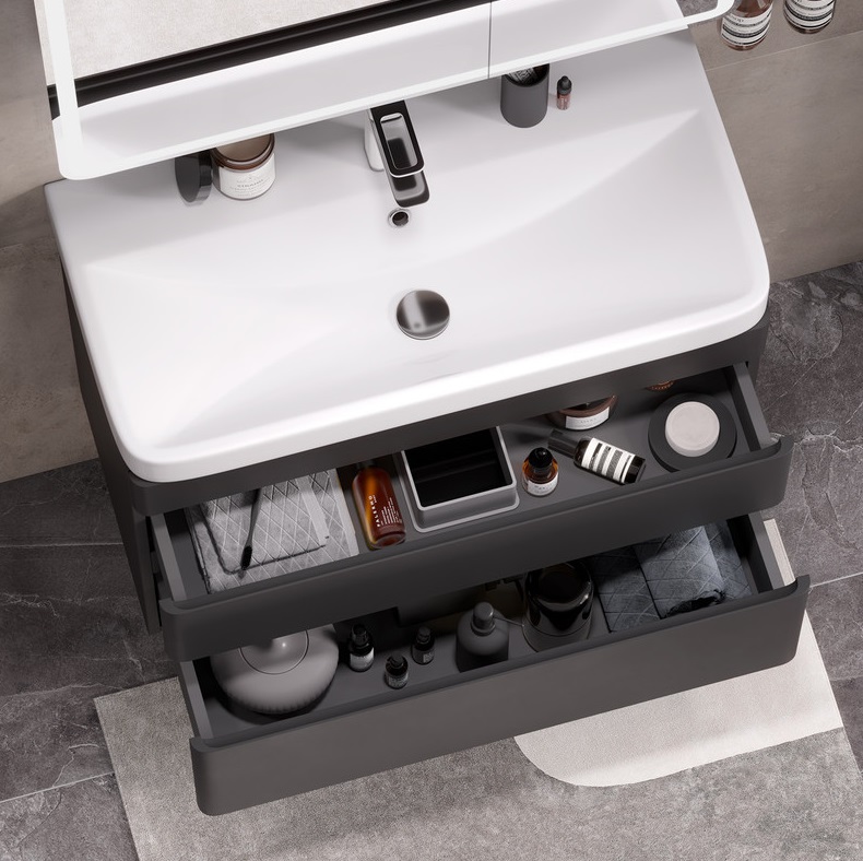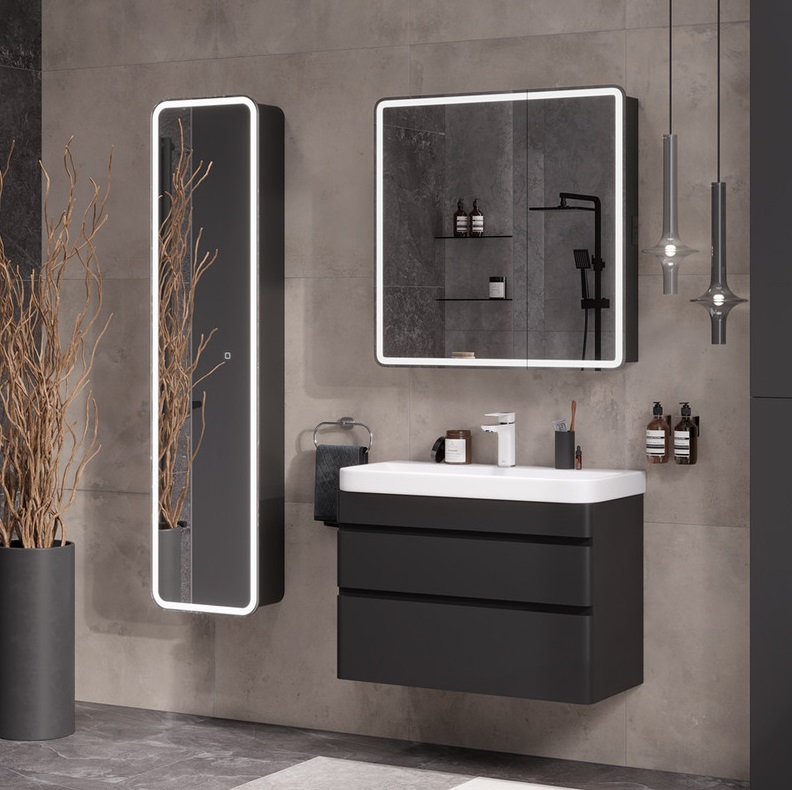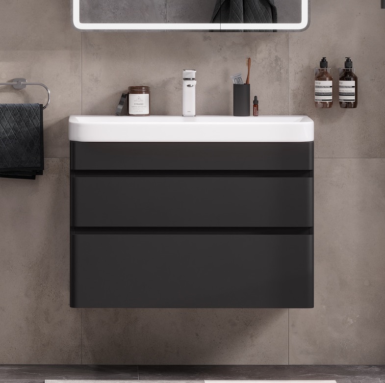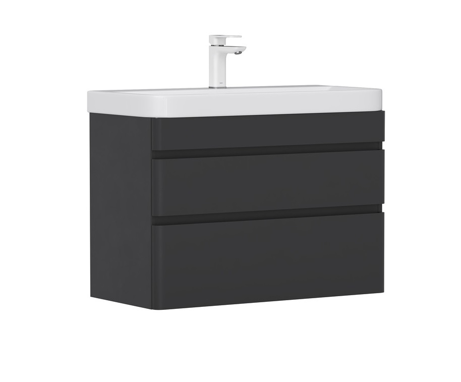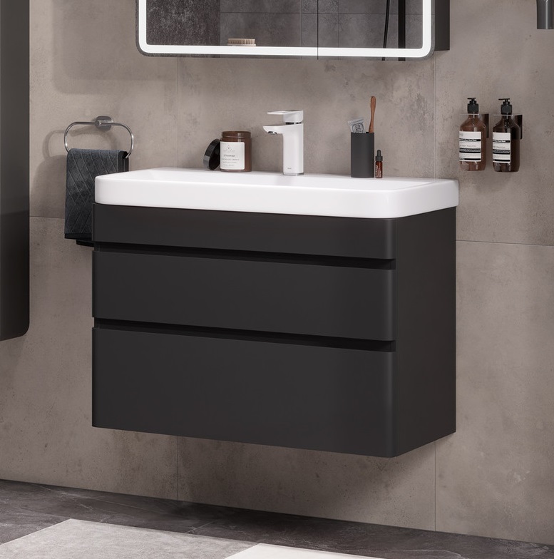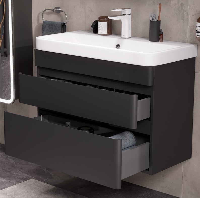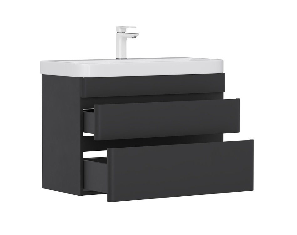 Тумба с раковиной Equil Eltoro 80 подвесная, 2 ящика, черный софт |