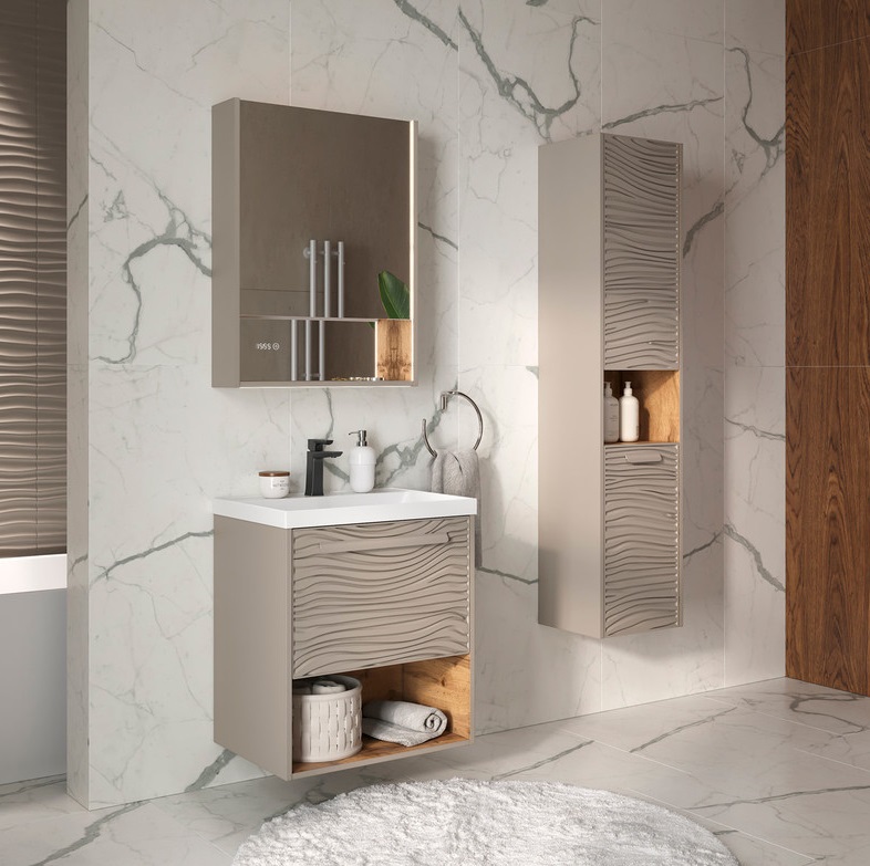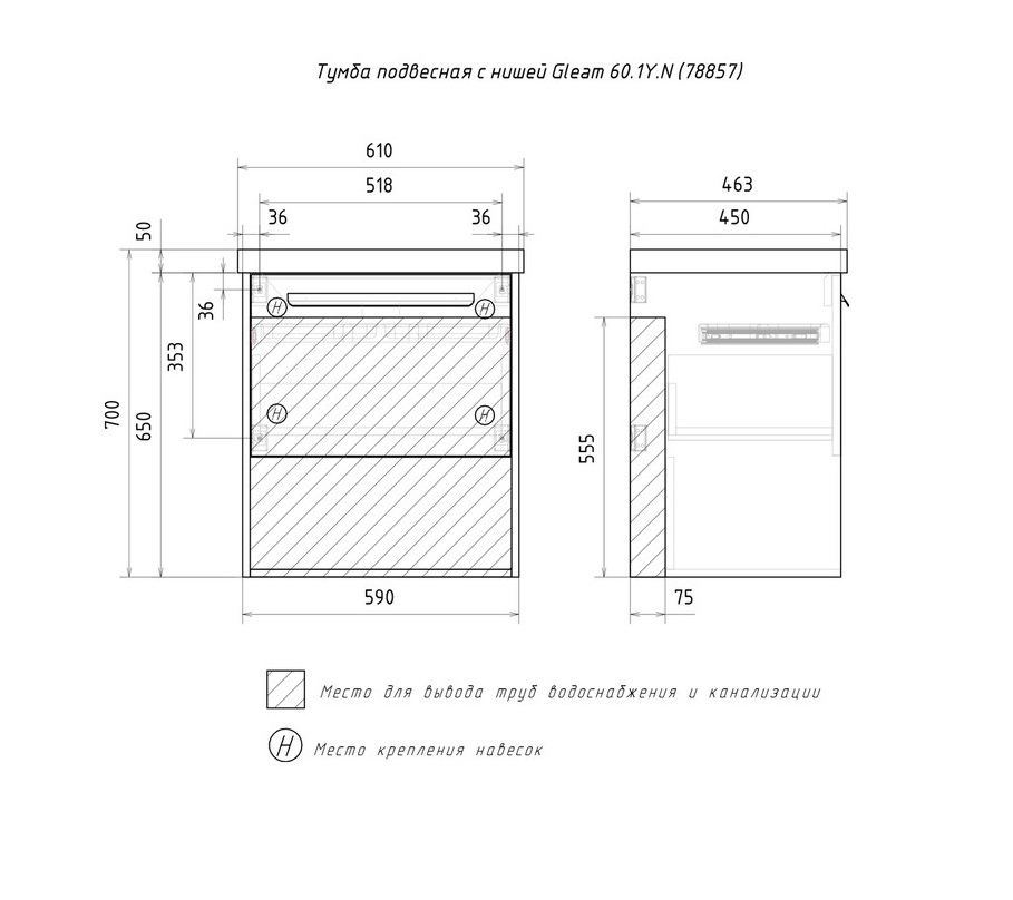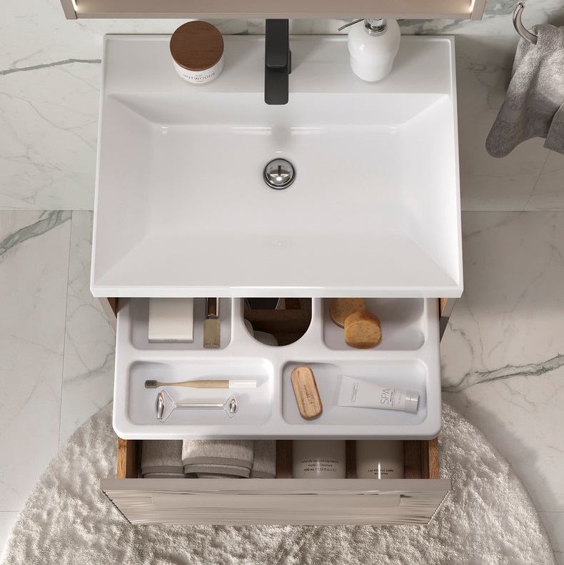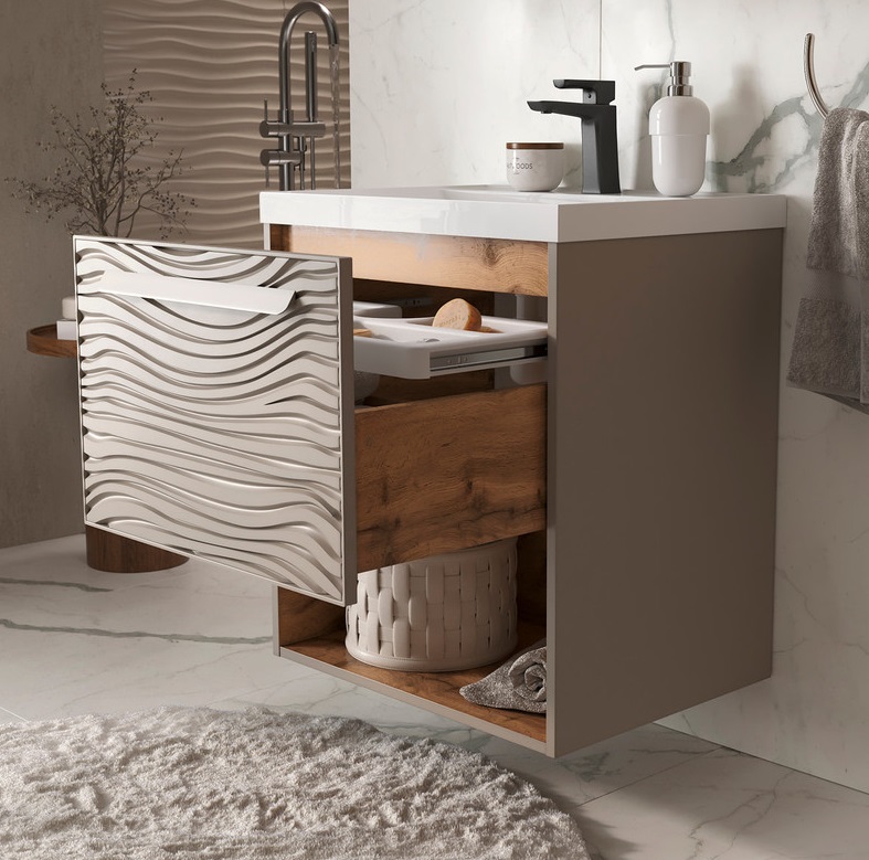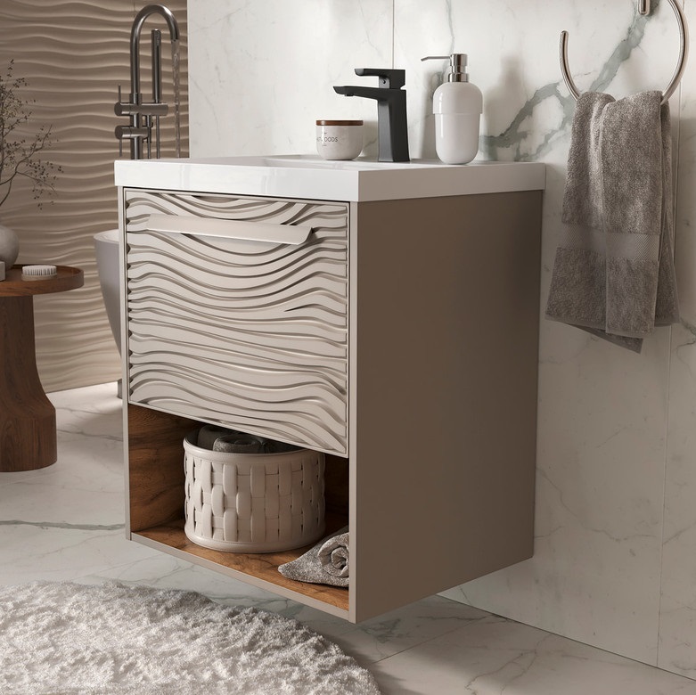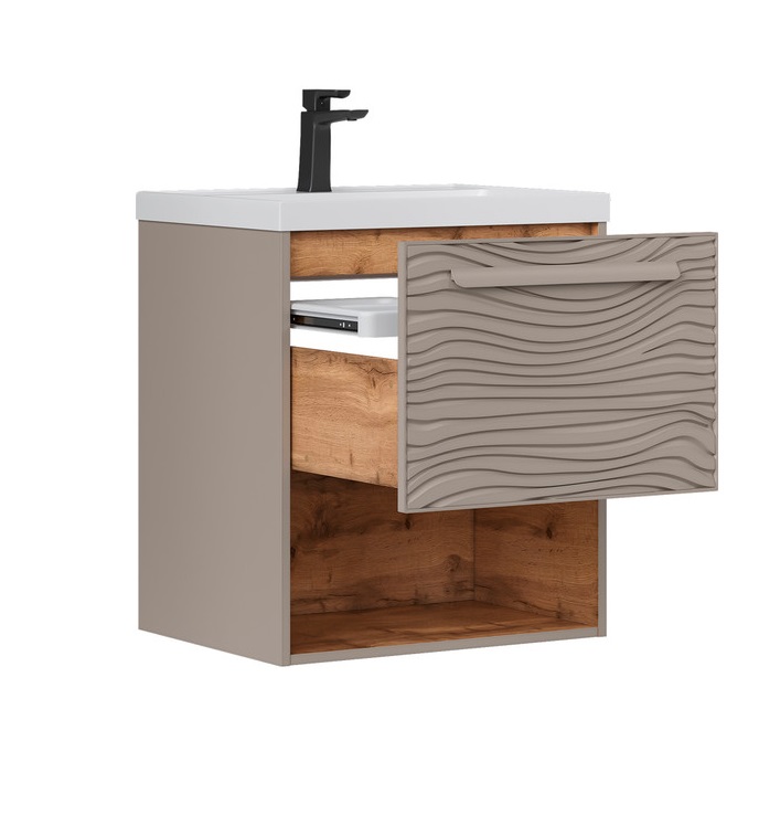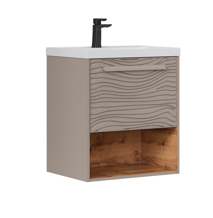 Тумба с раковиной Equil Gleam 60 подвесная, 1 ящик, амарок, дуб вотан |