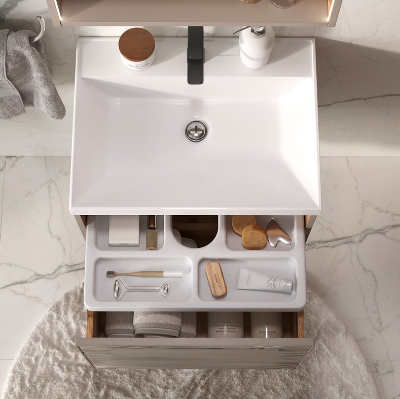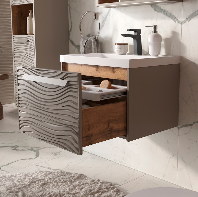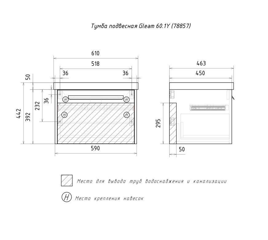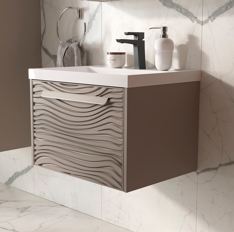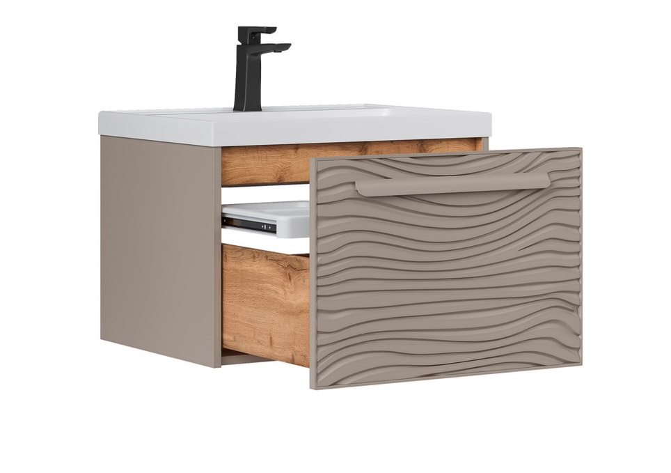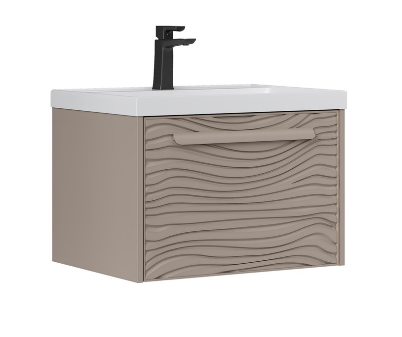 Тумба с раковиной Equil Gleam 60 подвесная, 1 ящик, амарок