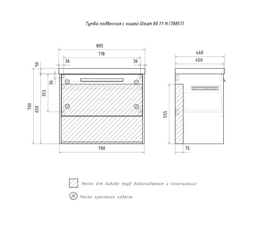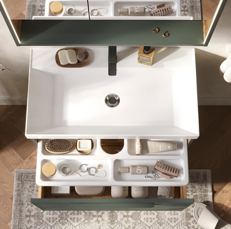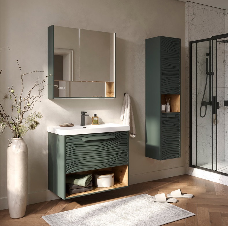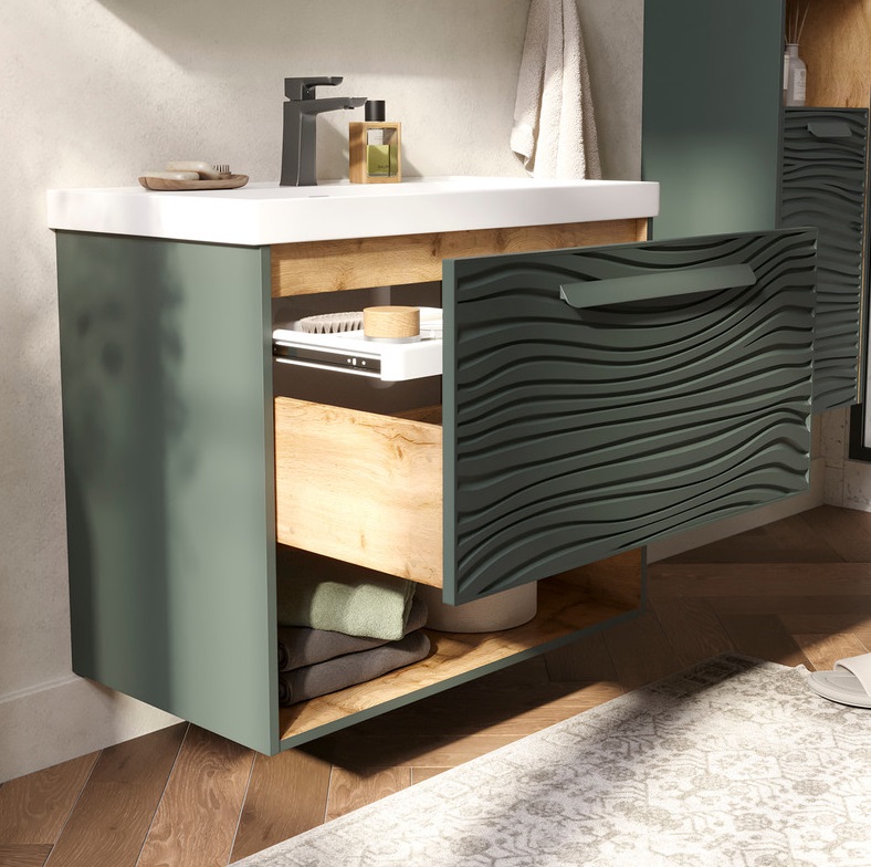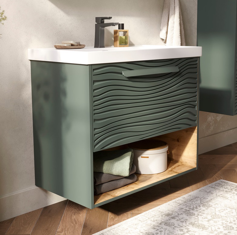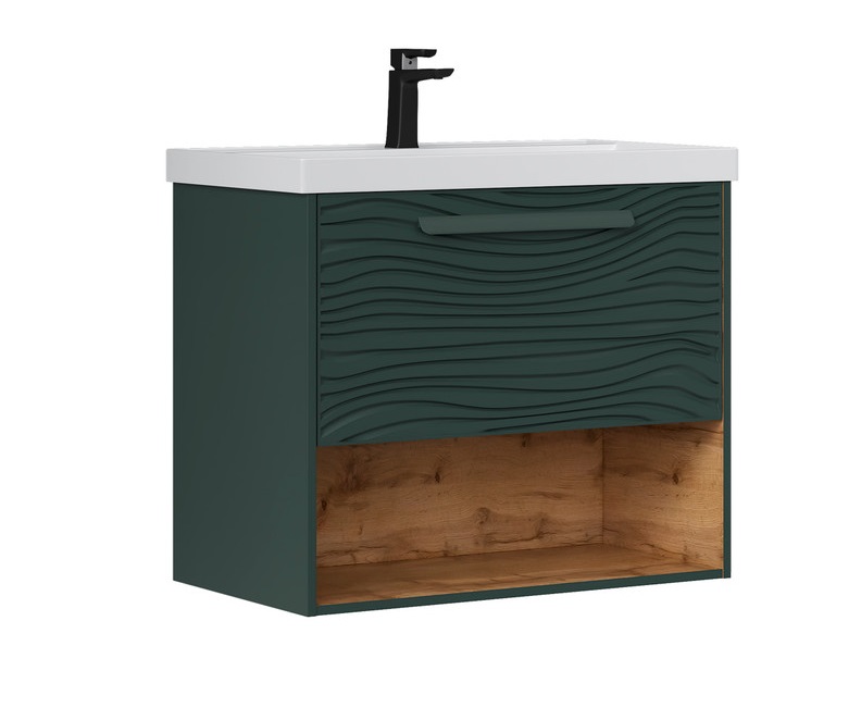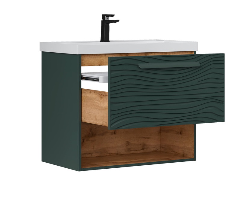 Тумба с раковиной Equil Gleam 80 подвесная, 1 ящик, зеленый камень, дуб вотан |