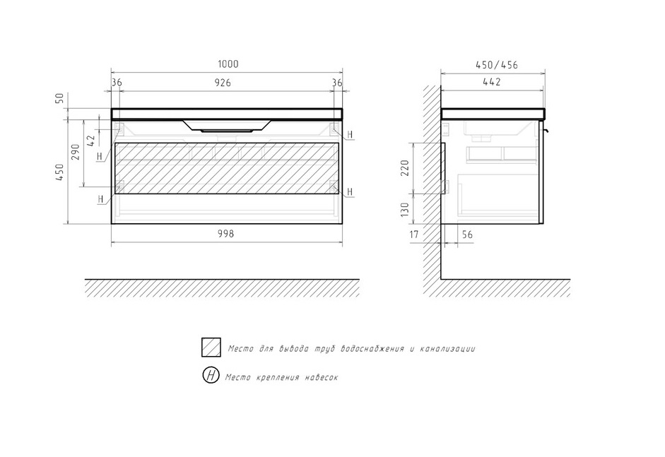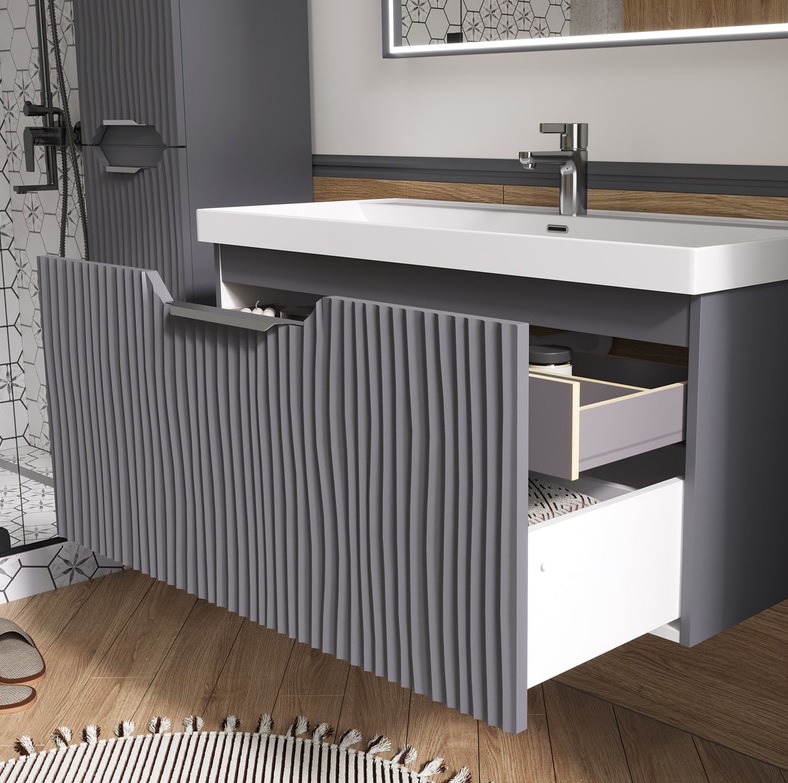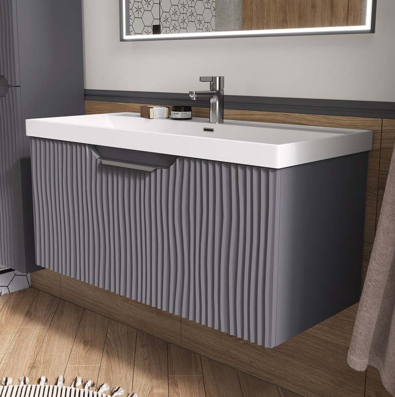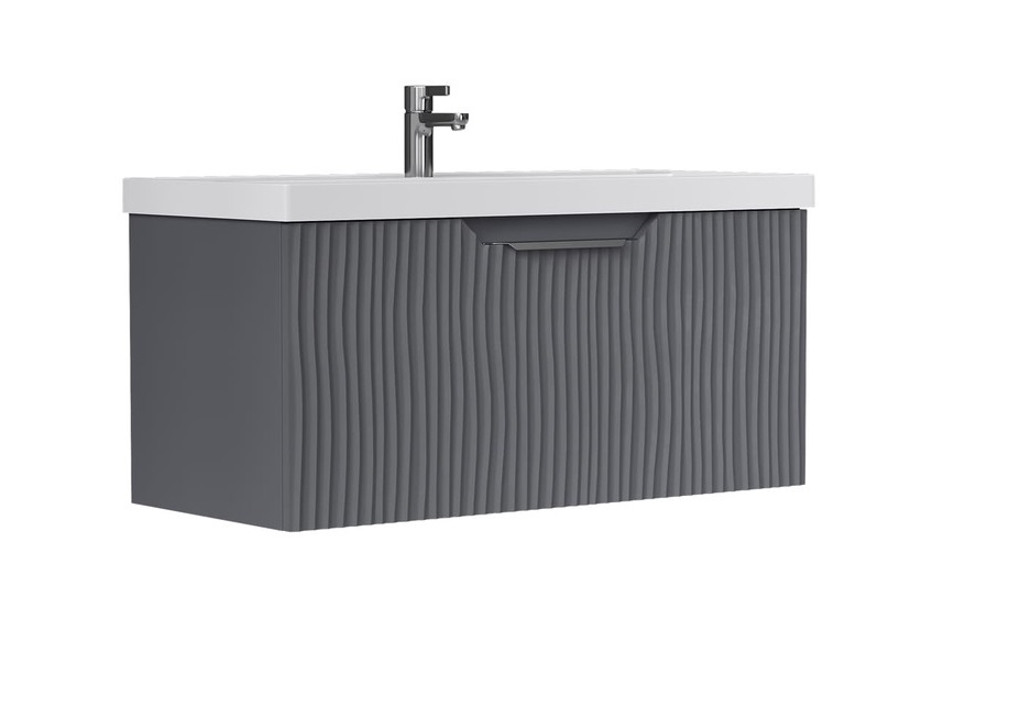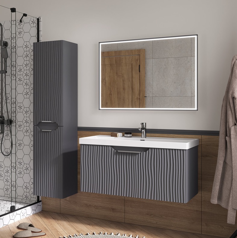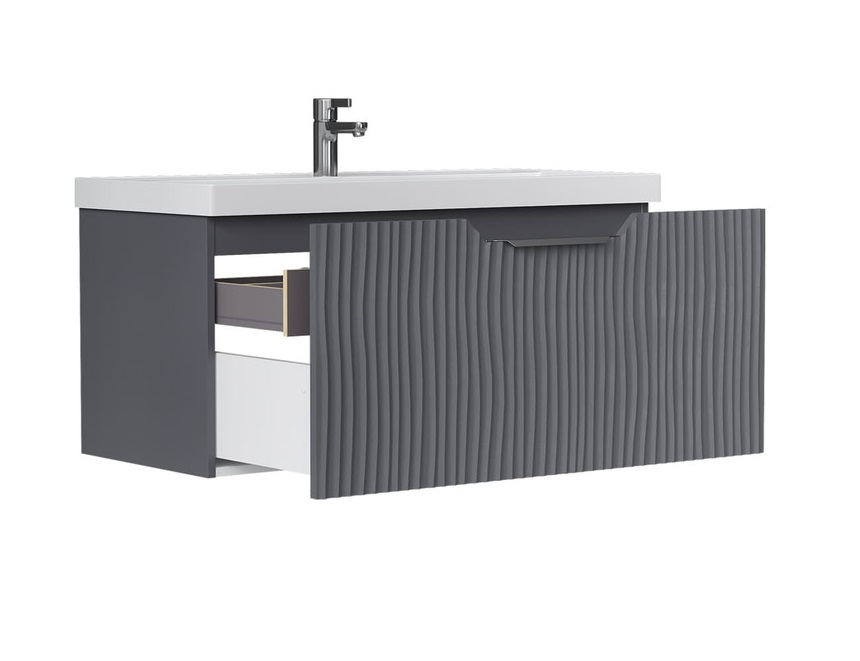 Тумба с раковиной Equil Mirage 100 подвесная, 1 ящик, графит софт |