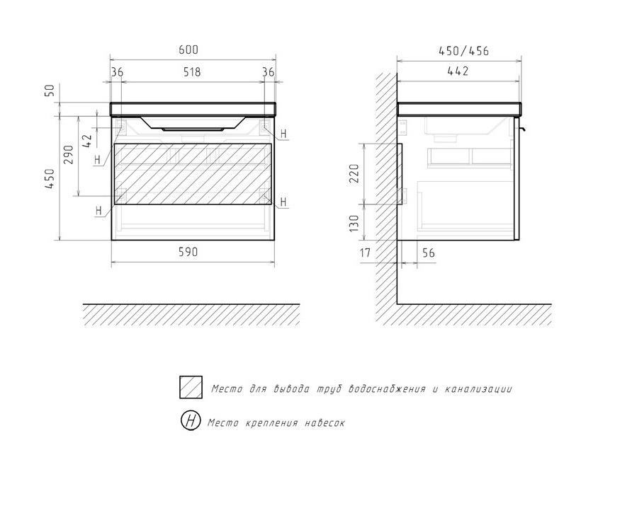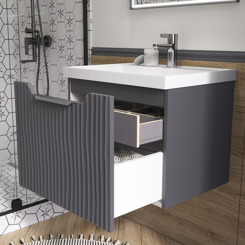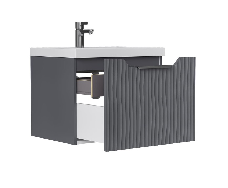 Тумба с раковиной Equil Mirage 60 подвесная, 1 ящик, графит софт |