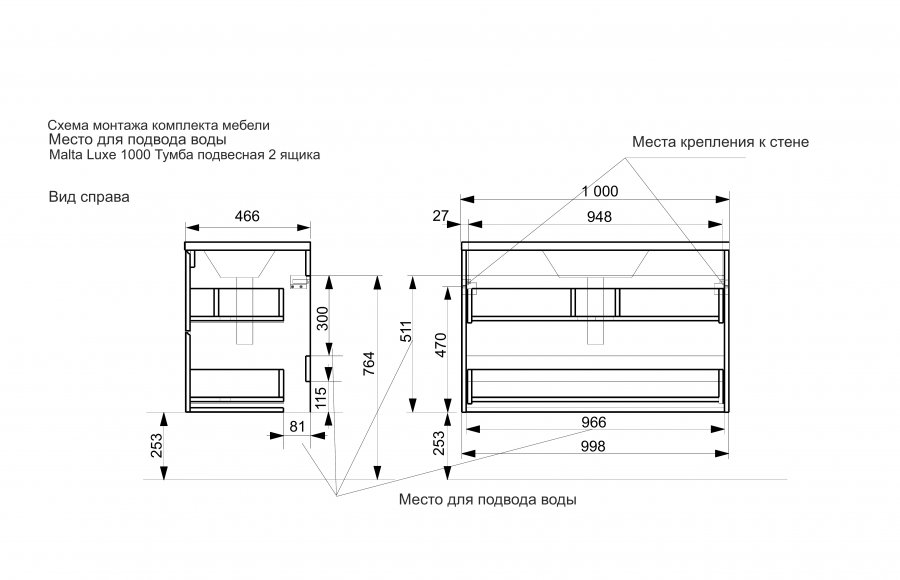 Тумба с раковиной Эстет Malta Luxe 100 подвесная, 2 ящика, белая |