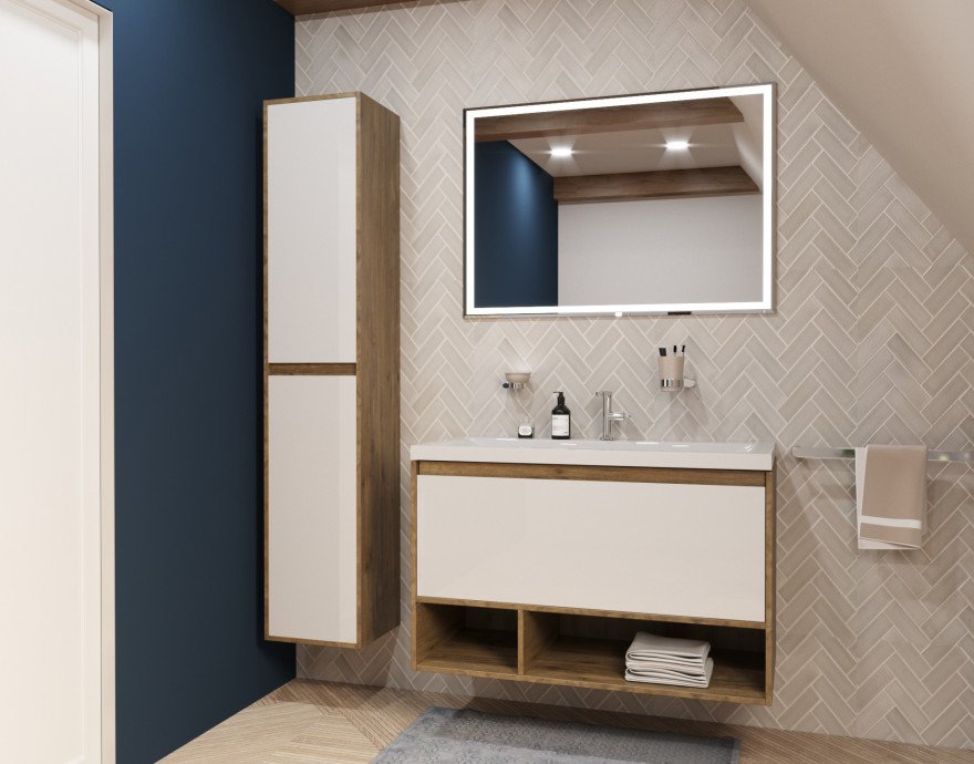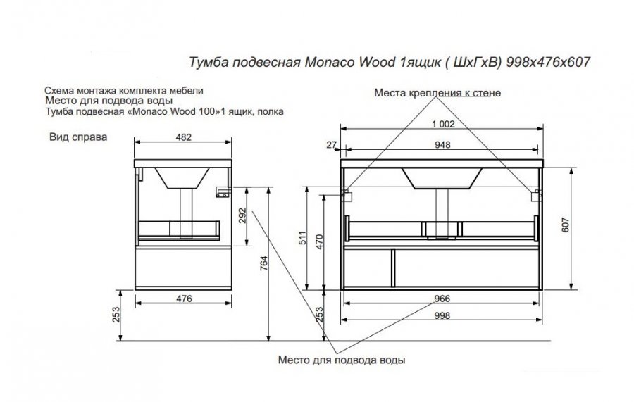 Тумба с раковиной Эстет Monaco Wood 100 1 ящик белая, дуб рустикальный |