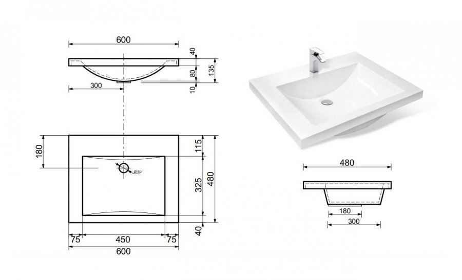 Тумба с раковиной Эстет Monaco Wood 60 1 ящик белая, дуб рустикальный |