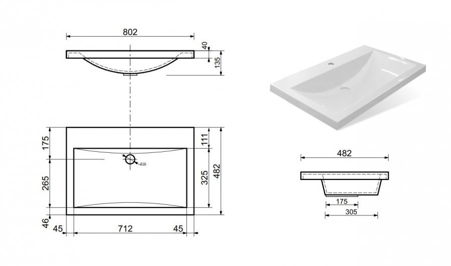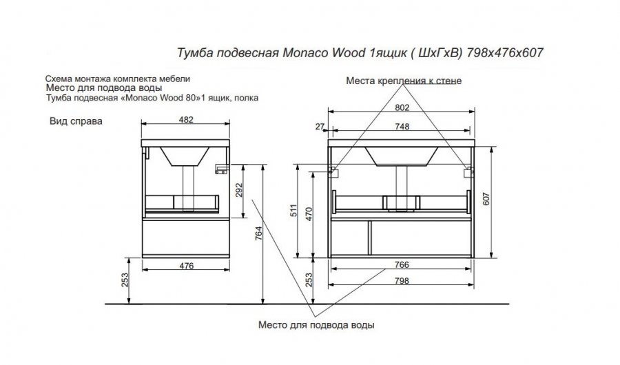 Тумба с раковиной Эстет Monaco Wood 80 1 ящик белая, дуб рустикальный |