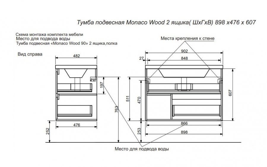 Тумба с раковиной Эстет Monaco Wood 90 2 ящика белая, дуб рустикальный |