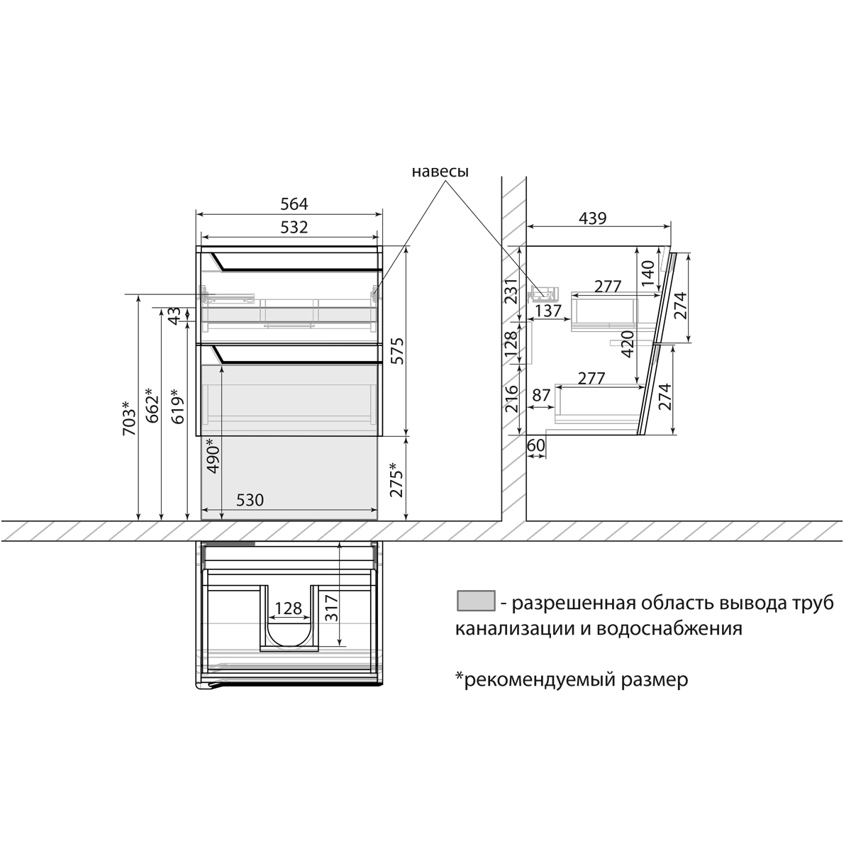 Тумба с раковиной Lemark Miano LM06M60T 60 2 ящика