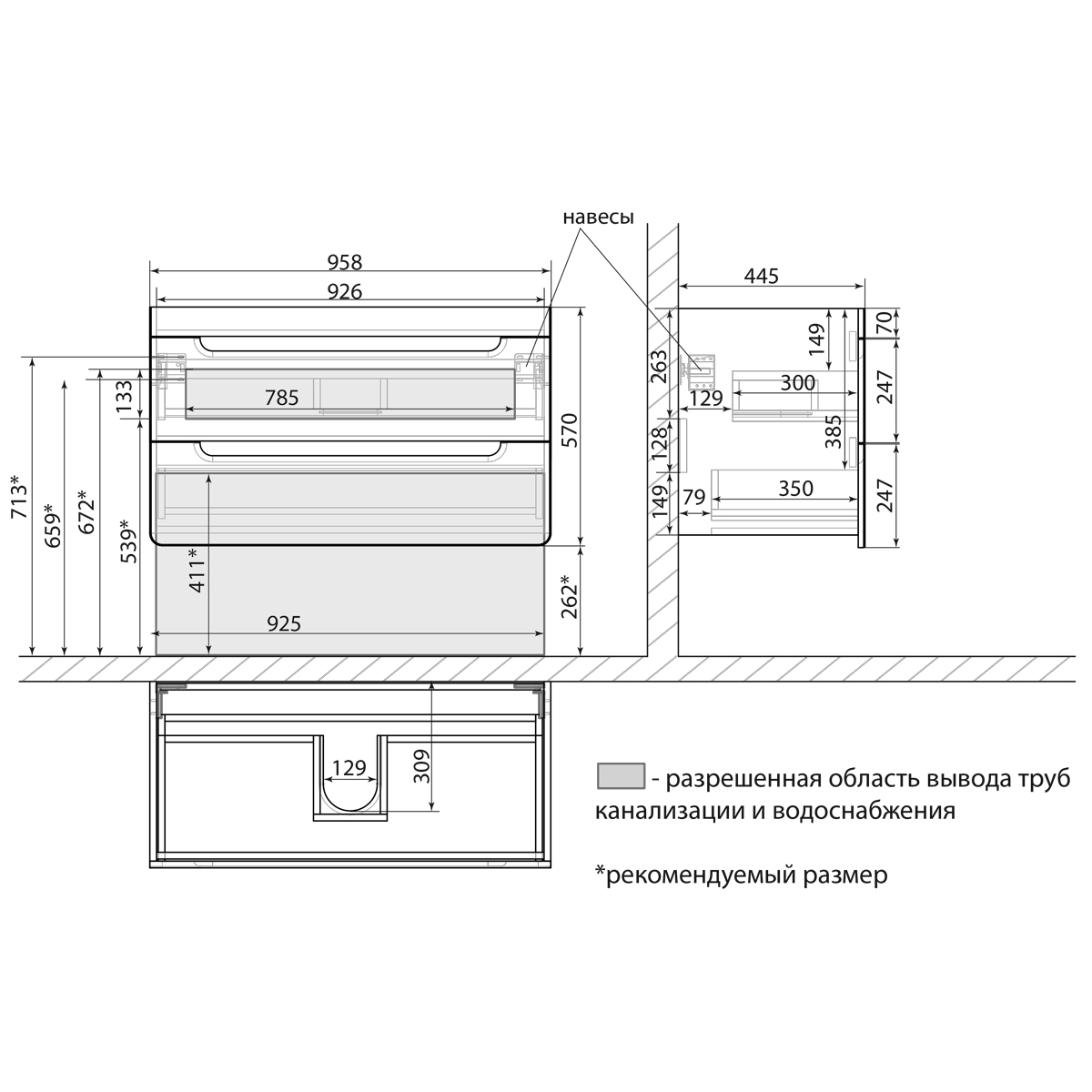 Тумба с раковиной Lemark Olivia LM08OL100T 100 2 ящика |
