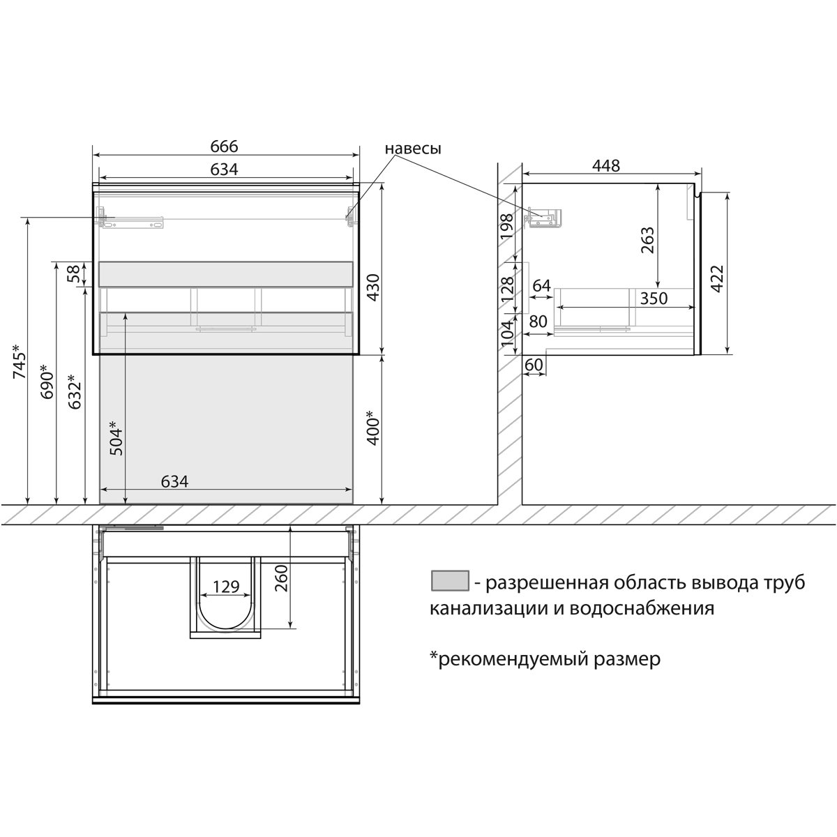 Тумба с раковиной Lemark Veon Mini LM02VM70T 70 1 ящик