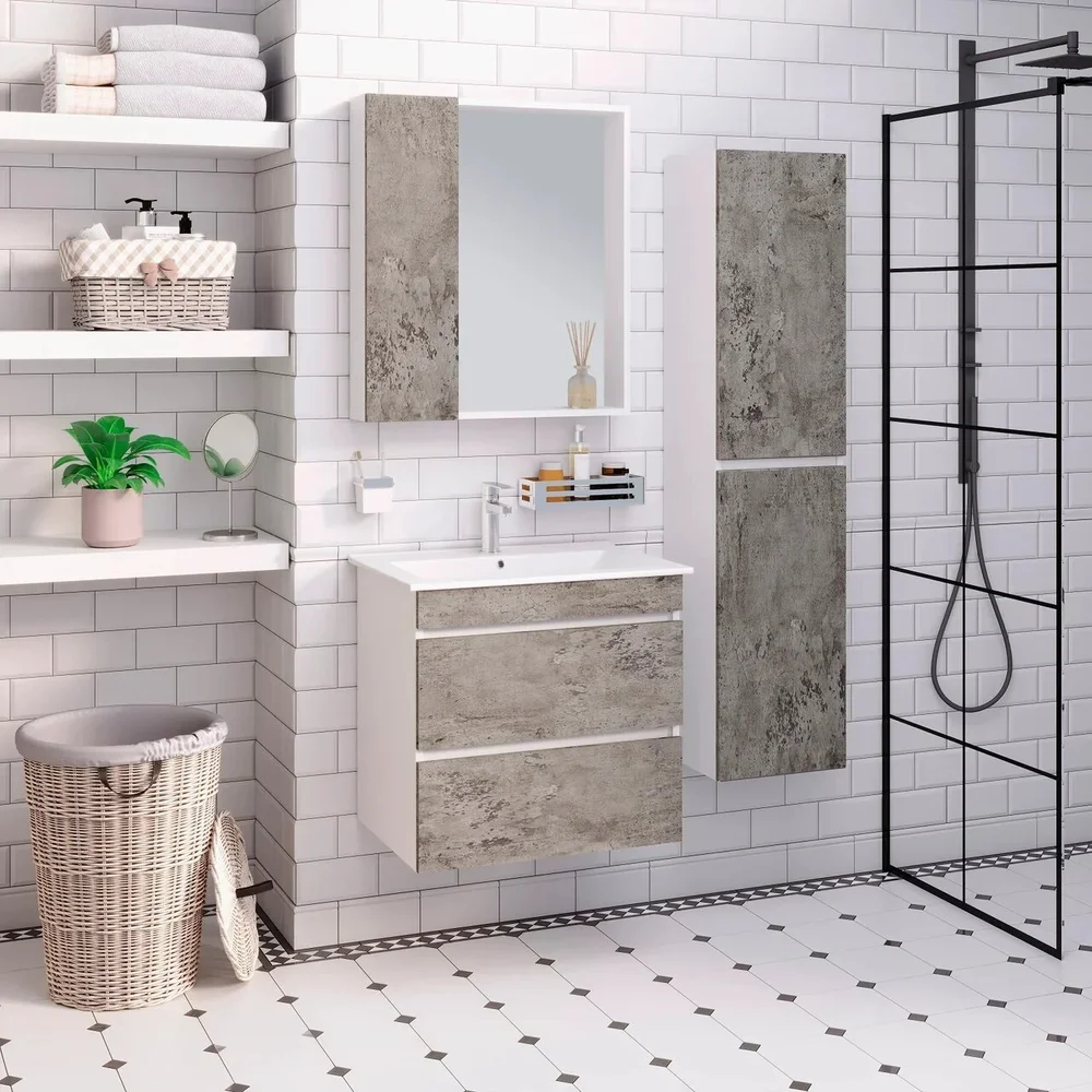 Тумба с раковиной Runo Манхэттен 65 серый бетон