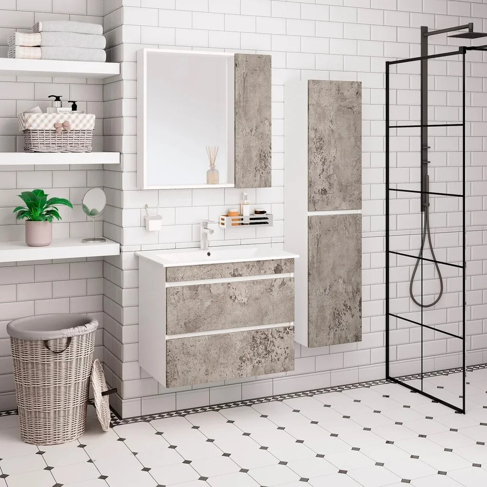 Тумба с раковиной Runo Манхэттен 75 серый бетон |