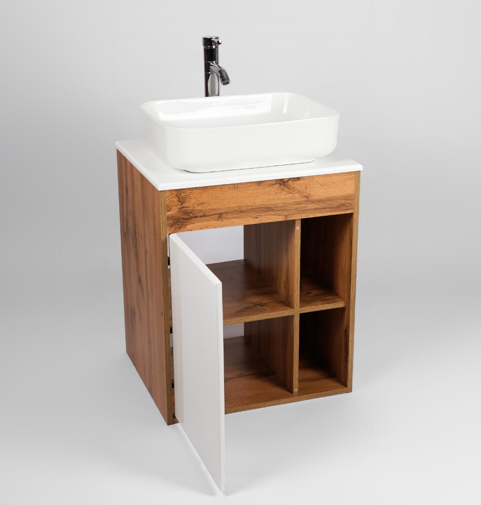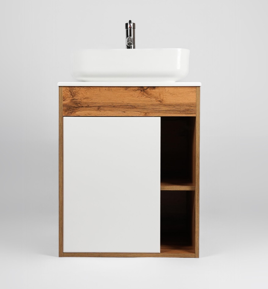 Тумба с раковиной VIANT Бостон 56 подвесная, 1 дверца, белый, дуб вотан |