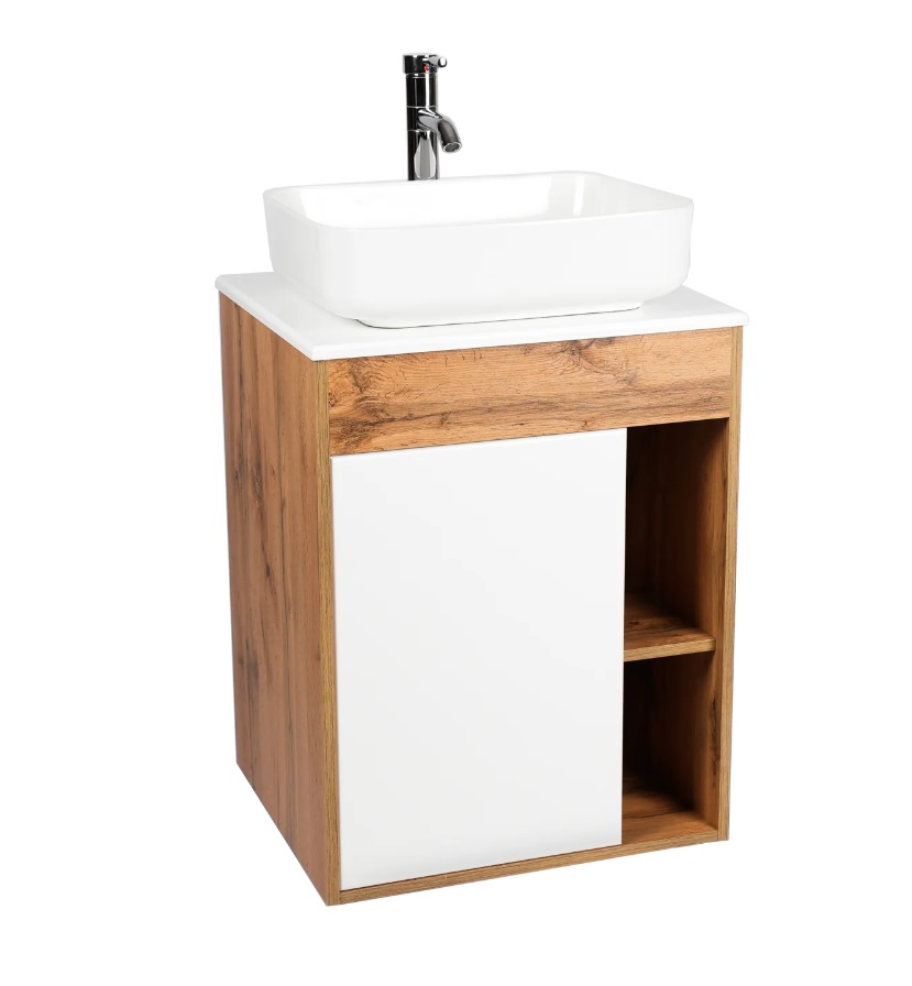 Тумба с раковиной VIANT Бостон 56 подвесная, 1 дверца, белый, дуб вотан