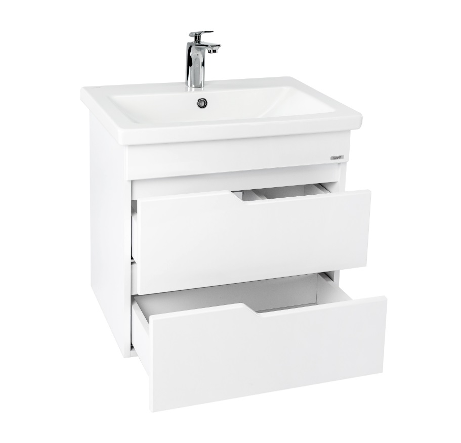 Тумба с раковиной VIANT Куба 60 подвесная, 2 ящика, белый
