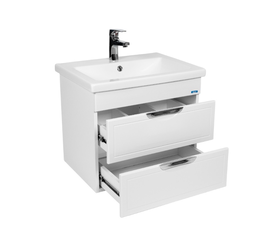 Тумба с раковиной VIANT Лима 60 подвесная, 2 ящика, белый