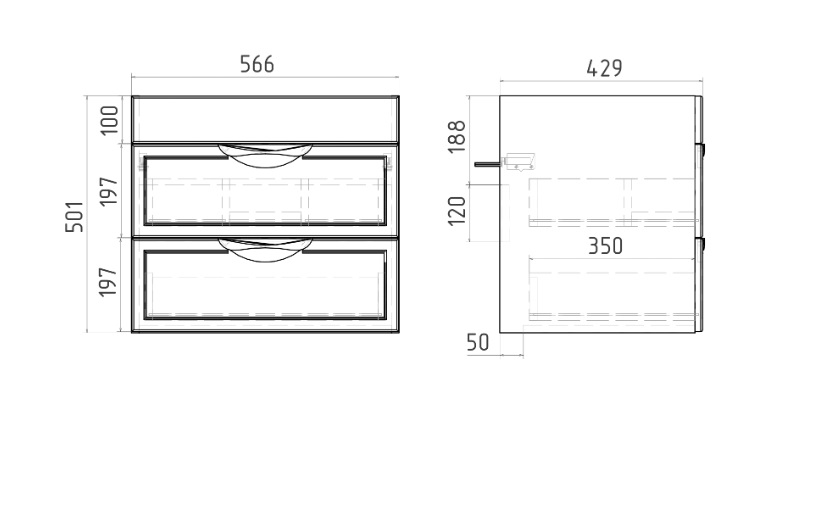 Тумба с раковиной VIANT Лима 60 подвесная, 2 ящика, белый |