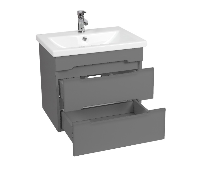 Тумба с раковиной VIANT Марсель 80 подвесная, 2 ящика, графит |