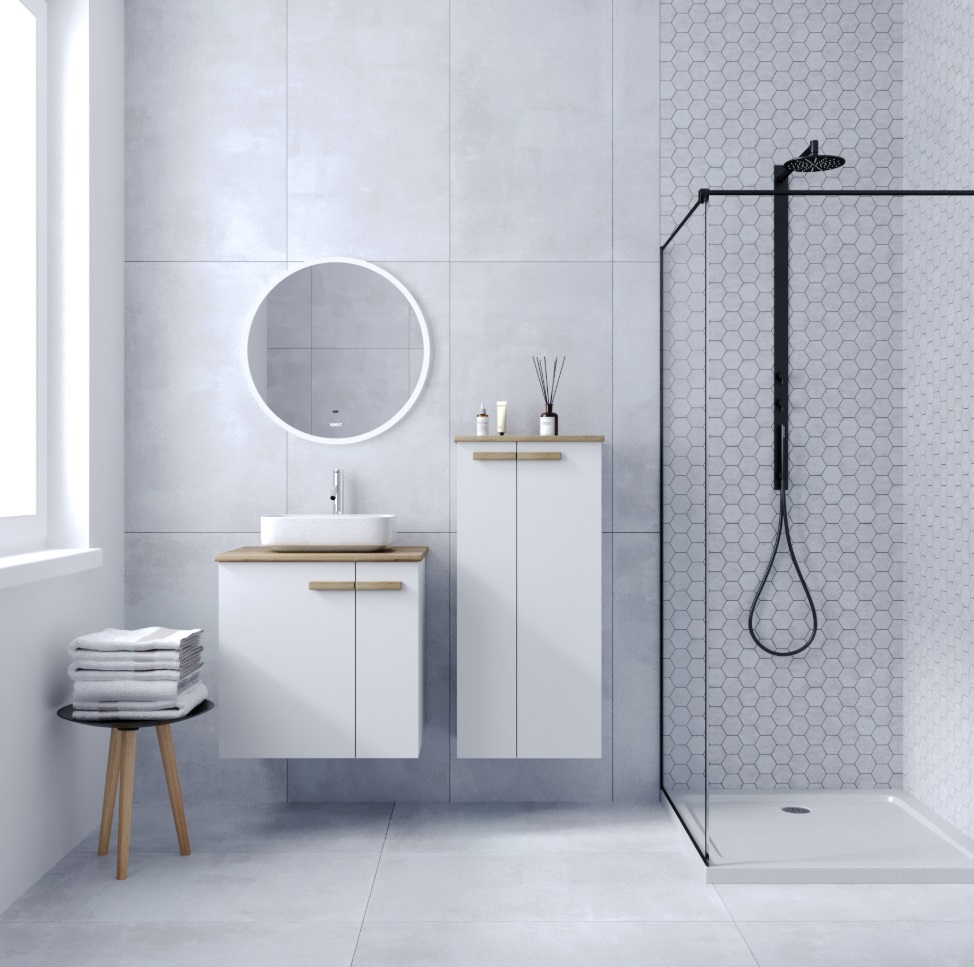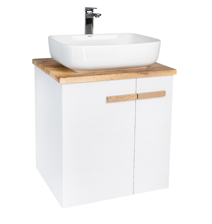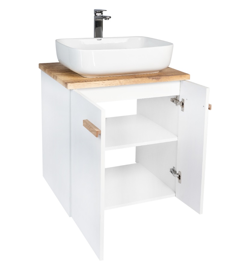 Тумба с раковиной VIANT Мюнхен 60 подвесная, 2 дверцы, белый, раковина на столешницу MODUO 50 SQUARE |