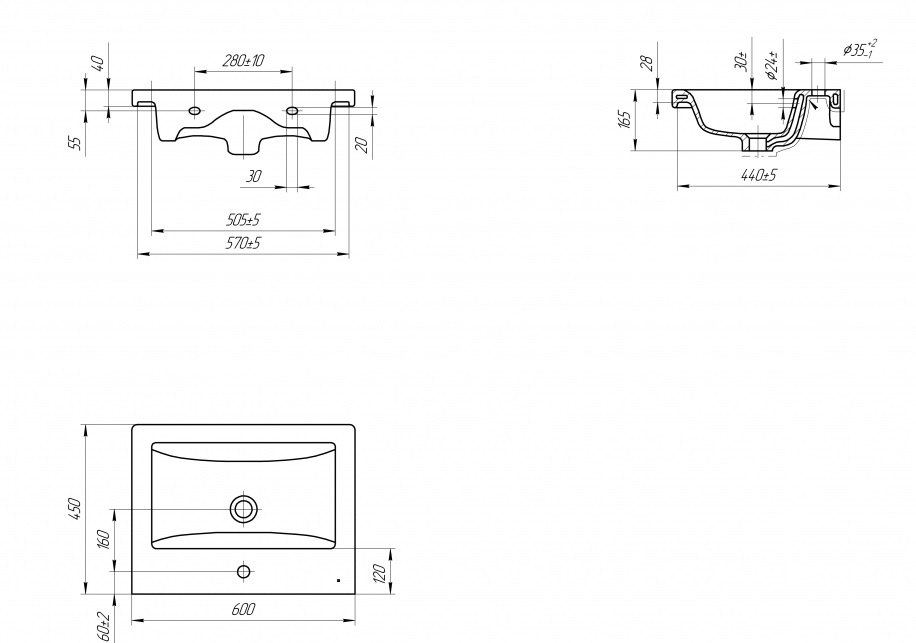 Тумба с раковиной VIANT София 60 подвесная, 2 ящика, графит |