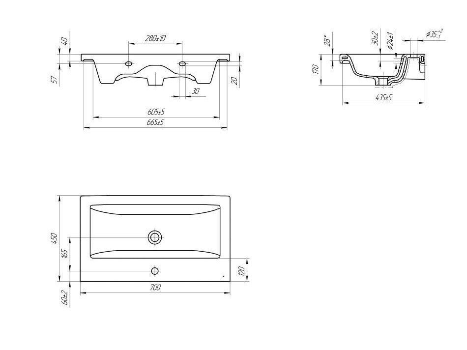 Тумба с раковиной VIANT София 70 подвесная, 2 ящика, графит |