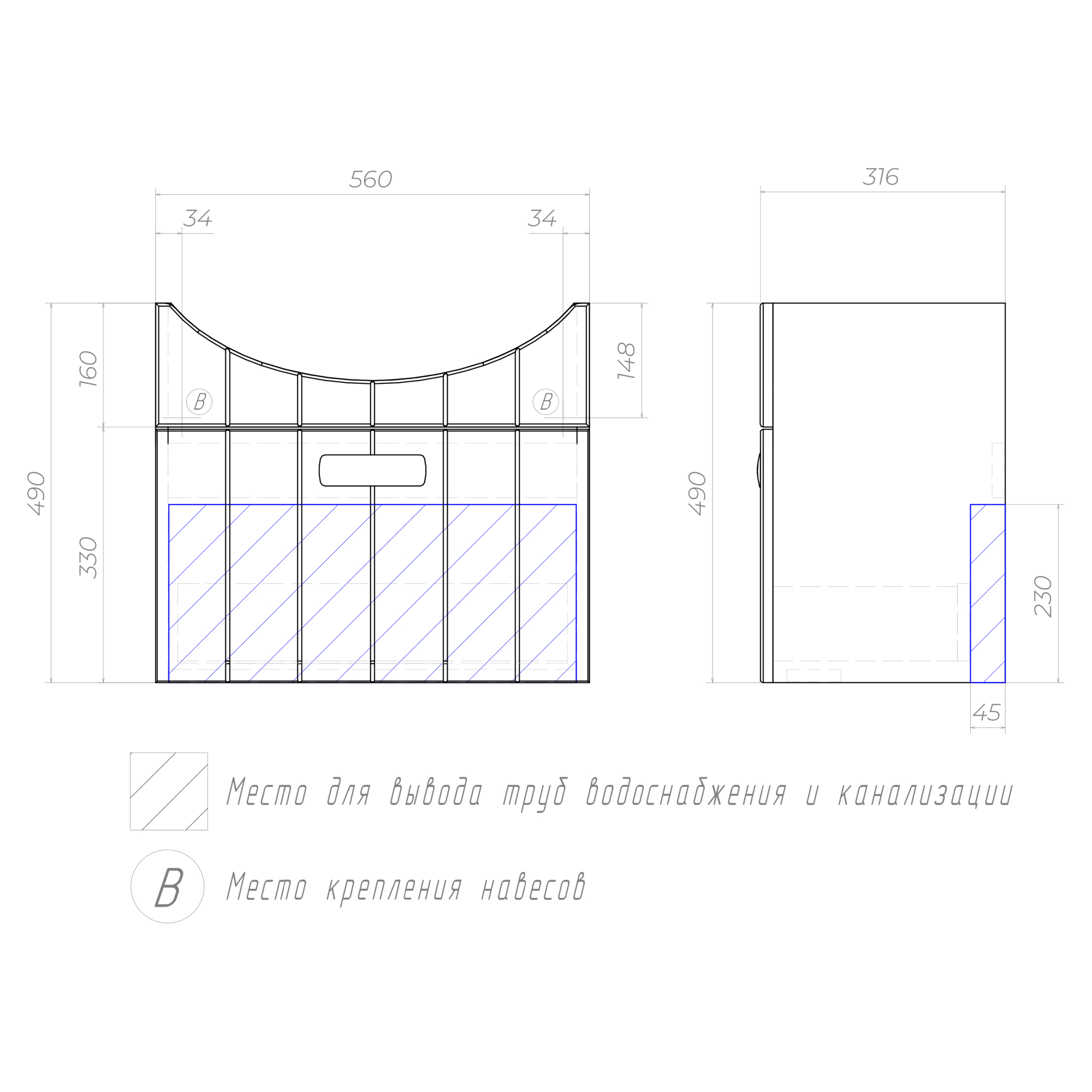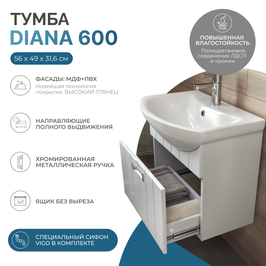 Тумба с раковиной Vigo Diana 60 подвесная, 1 ящик |