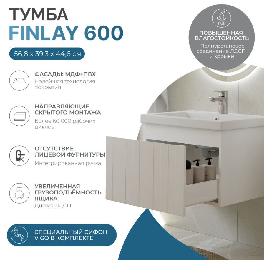 Тумба с раковиной Vigo Finlay 60 подвесная