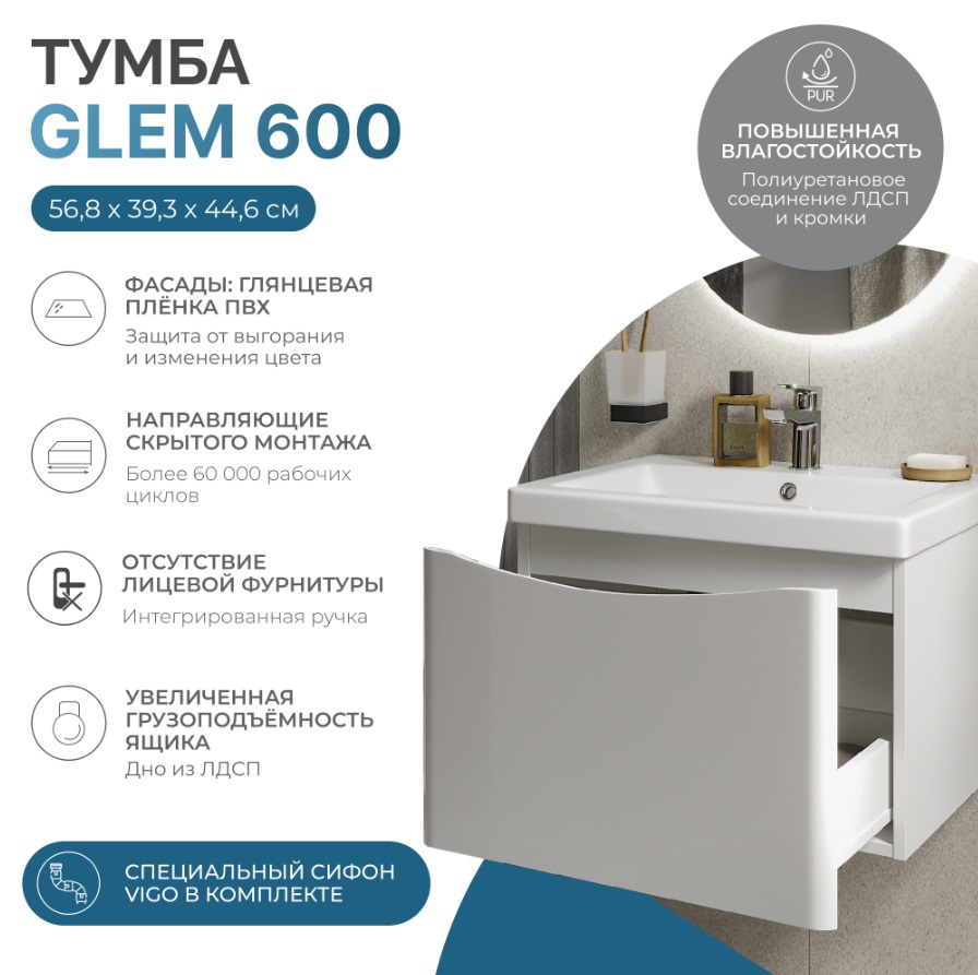 Тумба с раковиной Vigo Glem 60 подвесная |