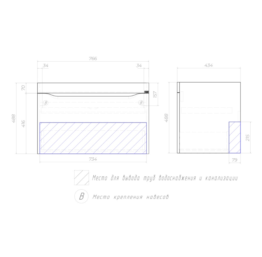 Тумба с раковиной Vigo Grani 80 подвесная, 1 ящик, белый |