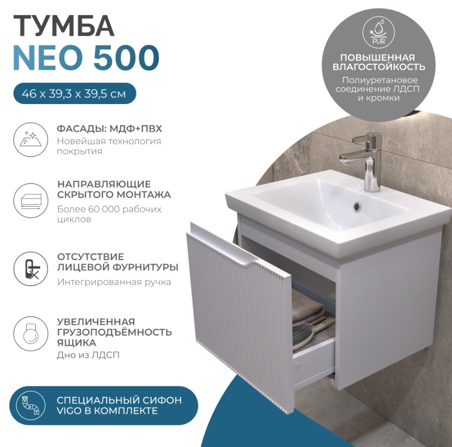 Тумба с раковиной Vigo Neo 50 подвесная |