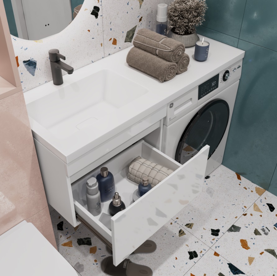 Тумба с раковиной Vigo Urban 120 L для стиральной машины, подвесная, 1 ящик