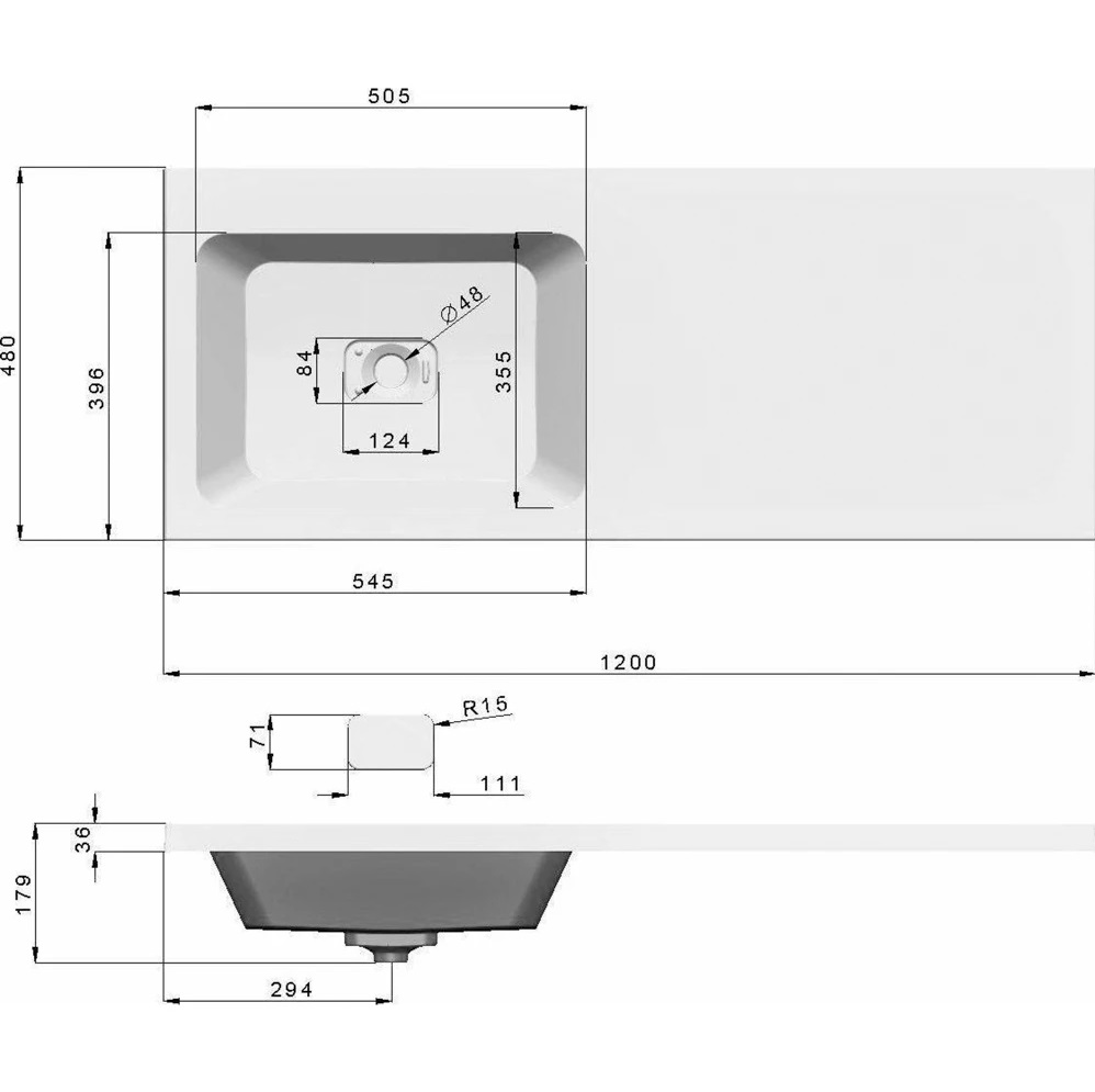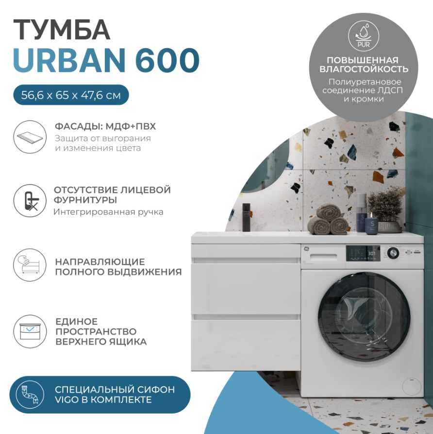 Тумба с раковиной Vigo Urban 120 L для стиральной машины, подвесная, 2 ящика |