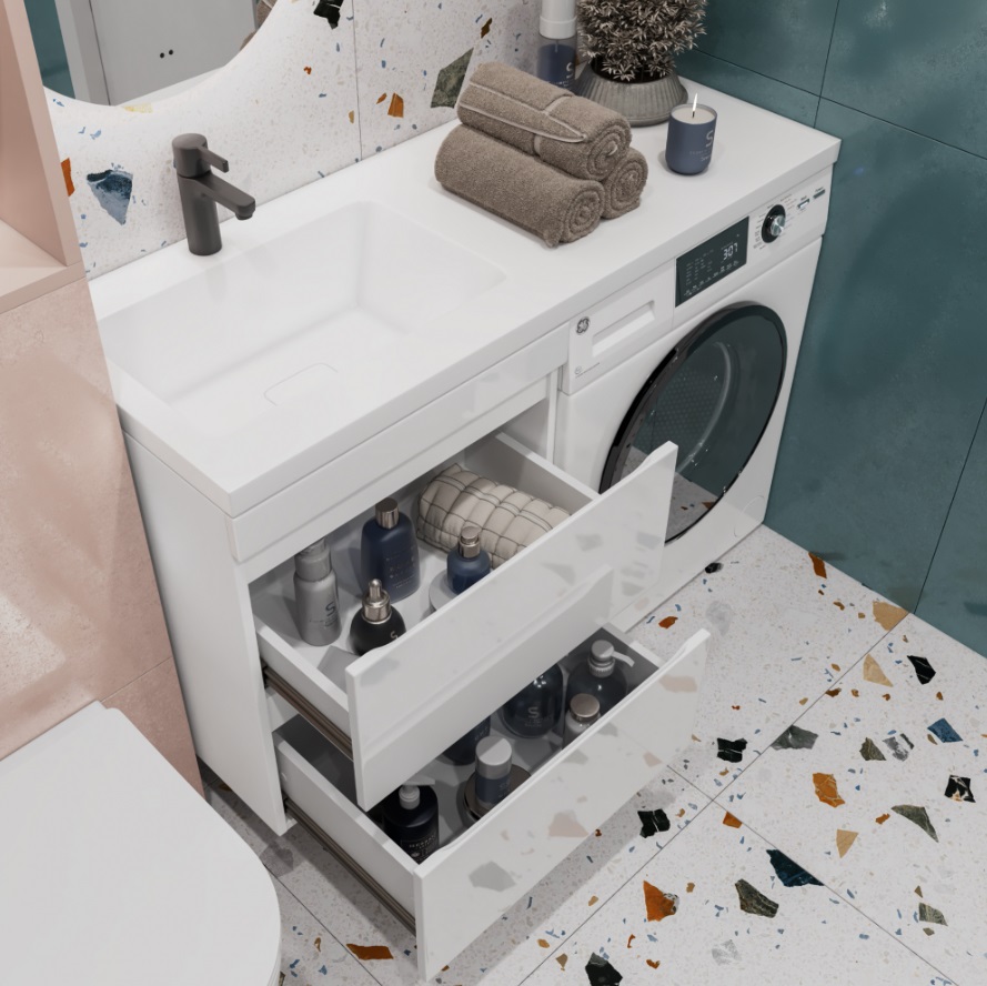 Тумба с раковиной Vigo Urban 120 L для стиральной машины, подвесная, 2 ящика