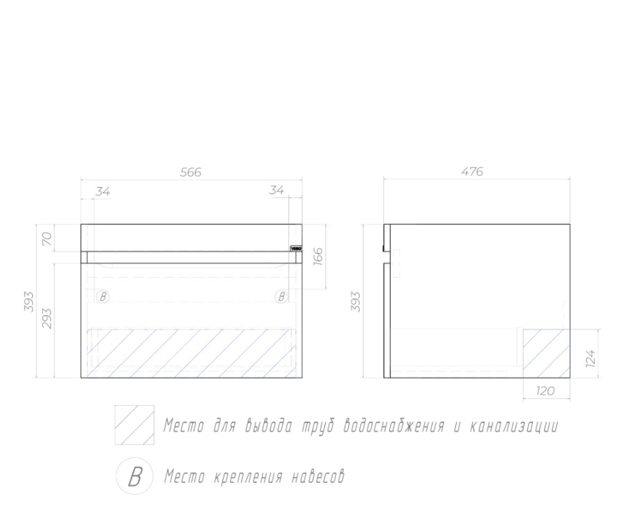 Тумба с раковиной Vigo Urban 120 R для стиральной машины, подвесная, 1 ящик |
