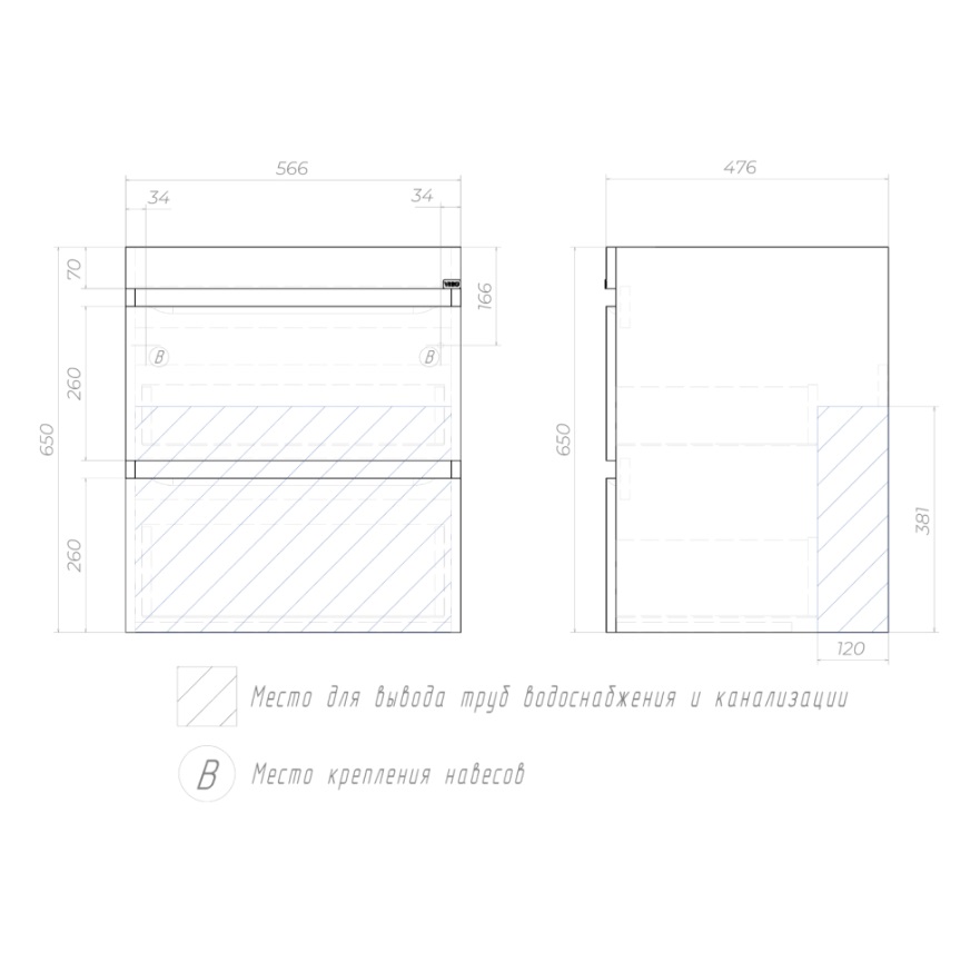 Тумба с раковиной Vigo Urban 120 R для стиральной машины, подвесная, 2 ящика |