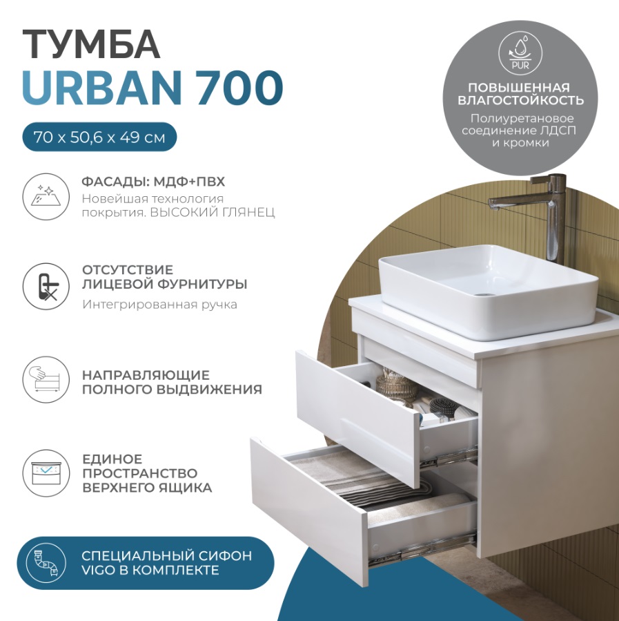 Тумба с раковиной Vigo Urban 70 со столешницей подвесная |