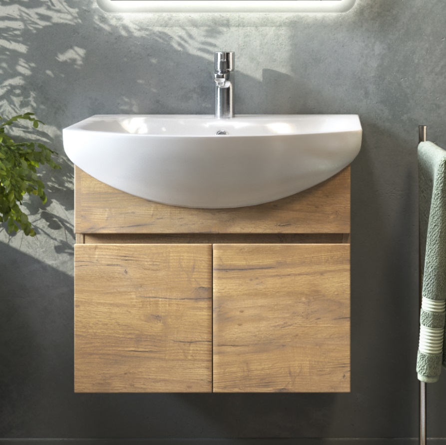 Тумба с раковиной Vigo Wing 60 подвесная, 2 дверцы, дуб золотой