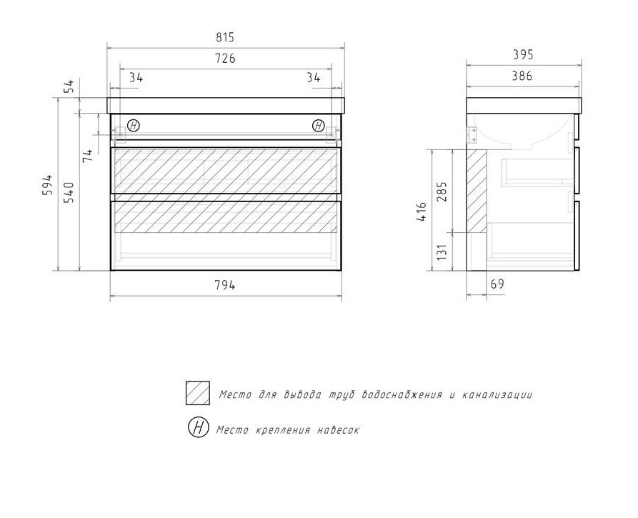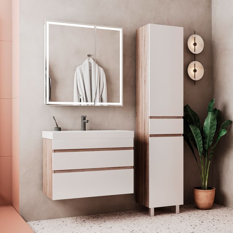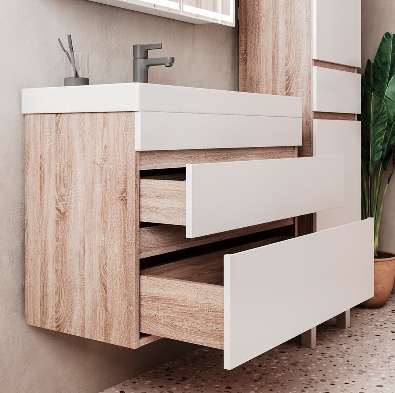 Тумба с раковиной Volna Conty 80 подвесной, 2 ящика, белый, дуб сонома |