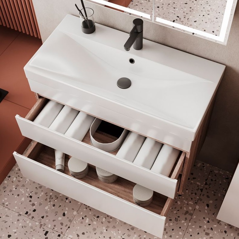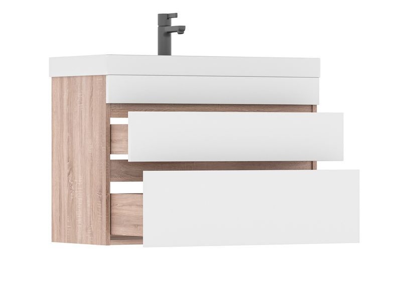 Тумба с раковиной Volna Conty 80 подвесной, 2 ящика, белый, дуб сонома